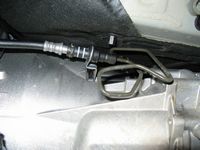 I did not remove the bracket like Mr.5 did, but I did use the tubing and squeeze method he used to fill the transmission-about 2 quarts or a little less. The