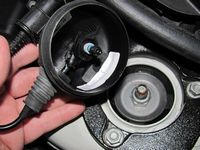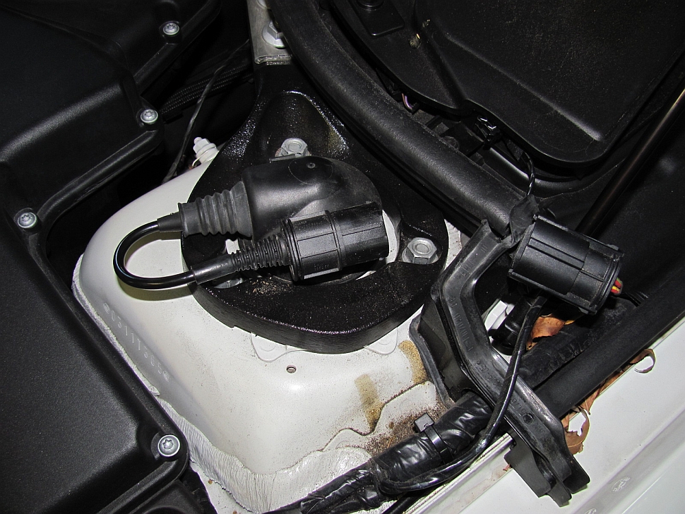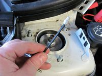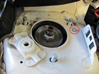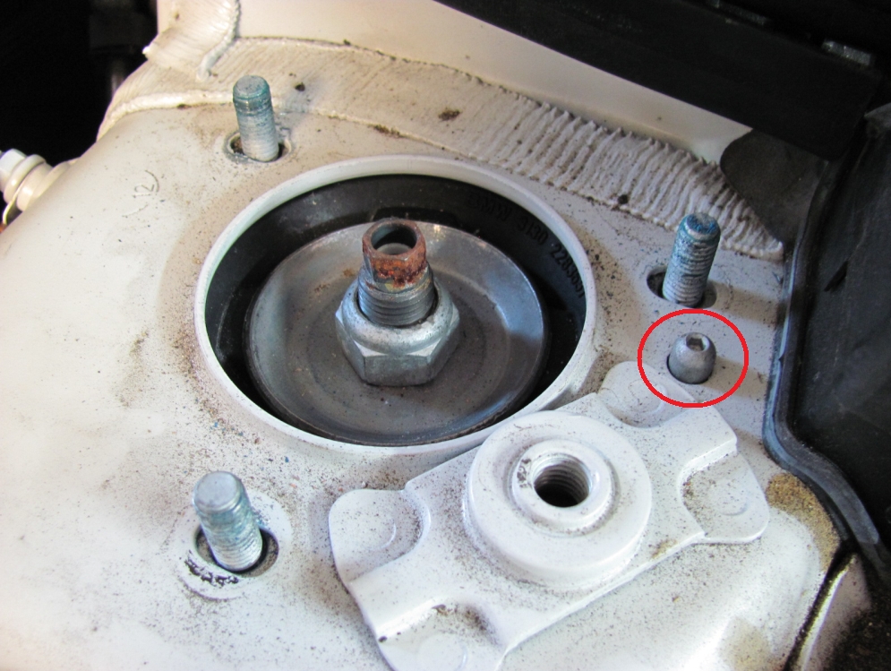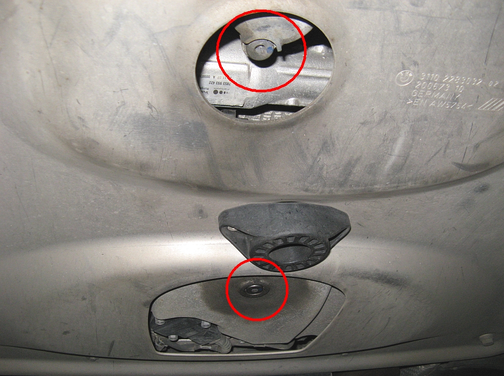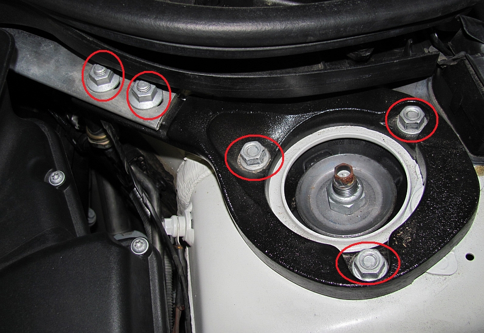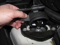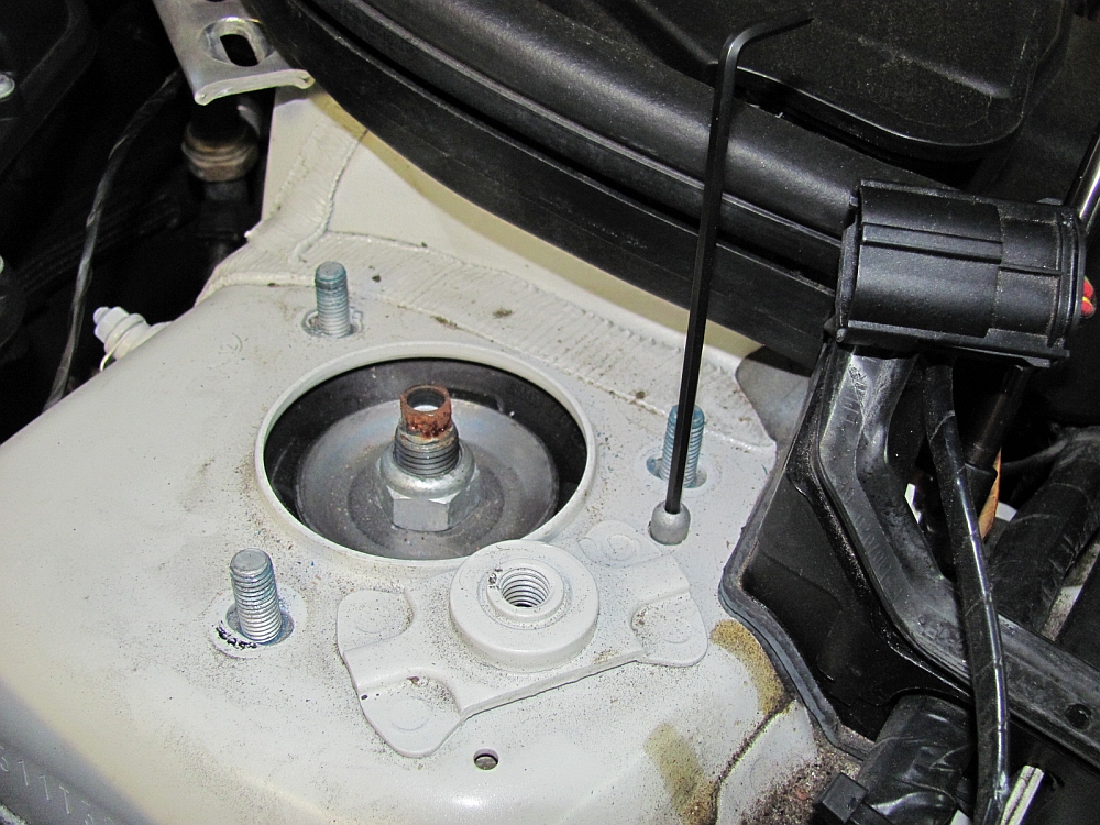 This is easily done while the car is on the ground. If you have an EDC car, the cap on the strut mount can be carefully lifted up and off,