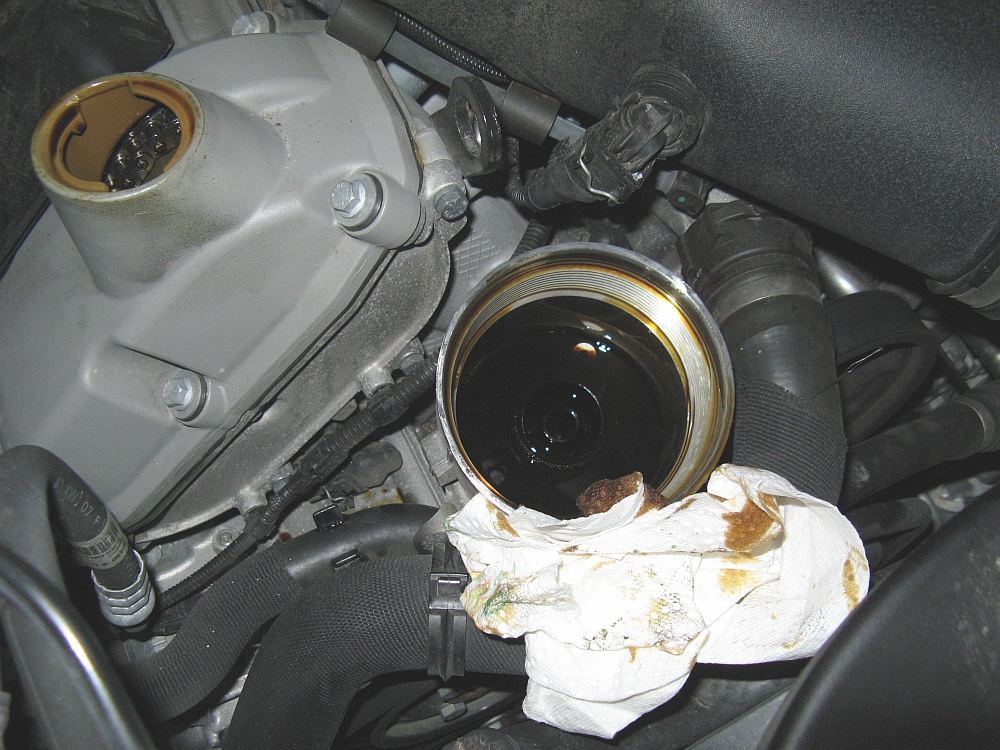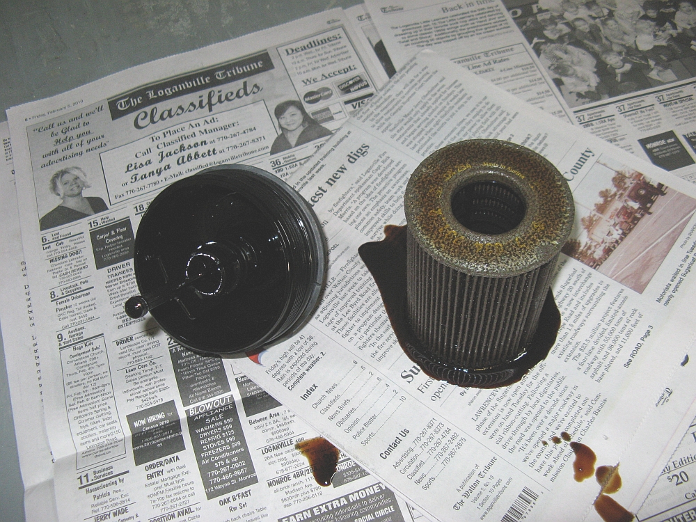 into a pan using the 6mm HEX socket. Remove the oil filter with the canister lid, I use paper towels around the canister for easier cleanup. You may choose to clean out the canister