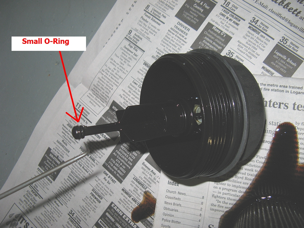 a trusty pick. When the O-ring seals are installed the new oil filter can be carefully pushed onto the canister lid stem and seated. The oil filter and canister lid