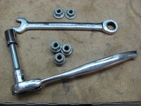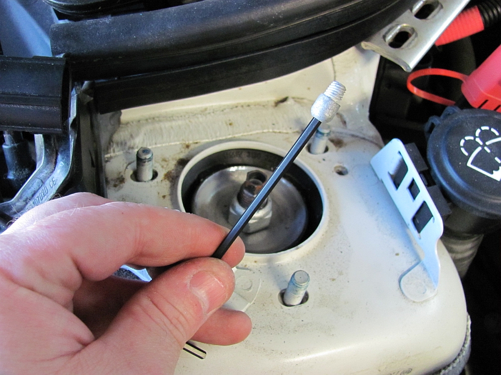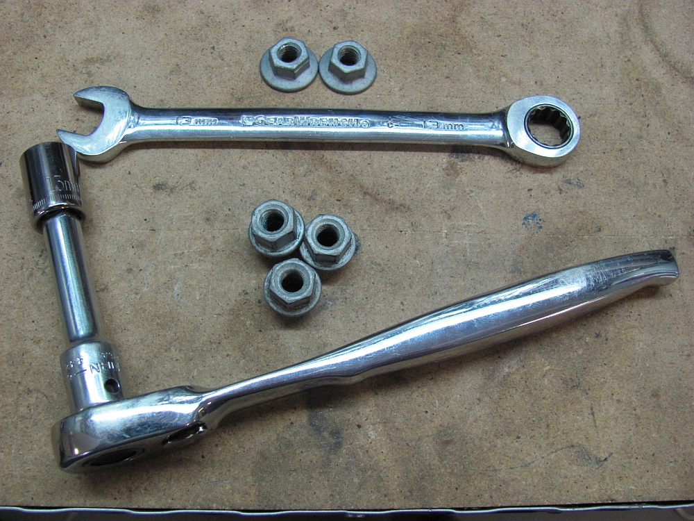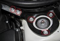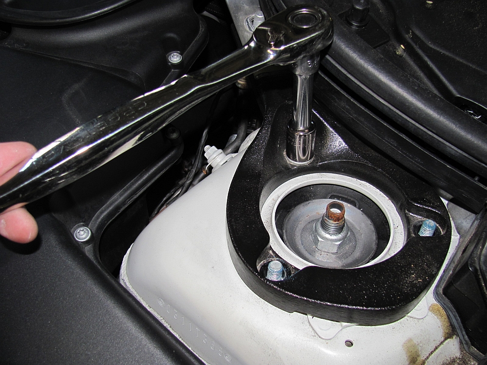to access the nuts with a combo wrench, 13mm. Next the strut mount nuts are removed, I used a socket wrench with a 13mm socket. Once all 5 nuts have been