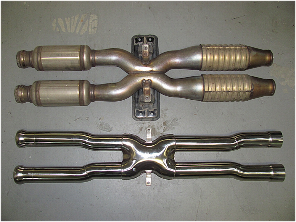 Sosi Performance X-Pipe installed. Reduced weight with a bit more aggressive sound and a bit more power, what's not to like. Easy to install and can be reversed by welding or clamping the OE X-Pipe back in place.