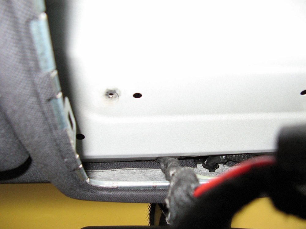 power wire to avoid running wire under the a-pillar airbag. Since our M3 had the carbon fiber roof, I also had to drill a small hole in the metal support