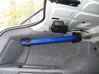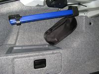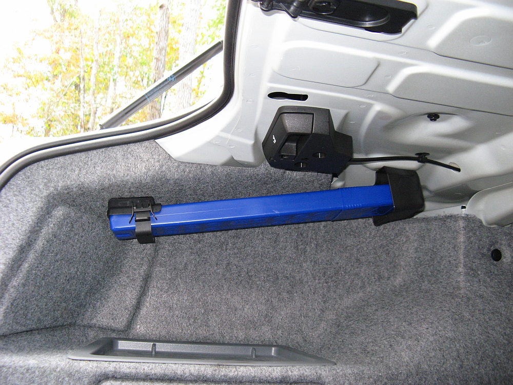 The bag has Velcro on the back so that it can "stick" to the carpeted trunk surface anywhere you wish to place it- I found a place out of the way of cargo.