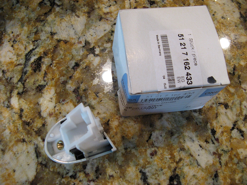 to allow for a small ground screw- be careful NOT to drill through your roof and lightly sand around the drilled hole for a good ground...also use a short screw that does not touch the CF roof European light switch (P/N 61316932796) from Tischer BMW Parts installed.