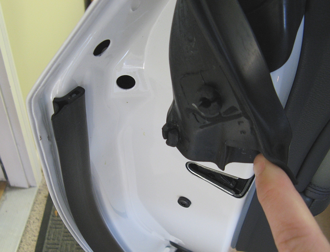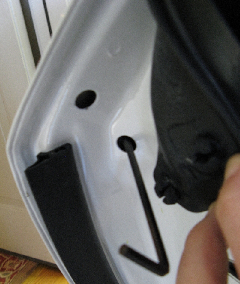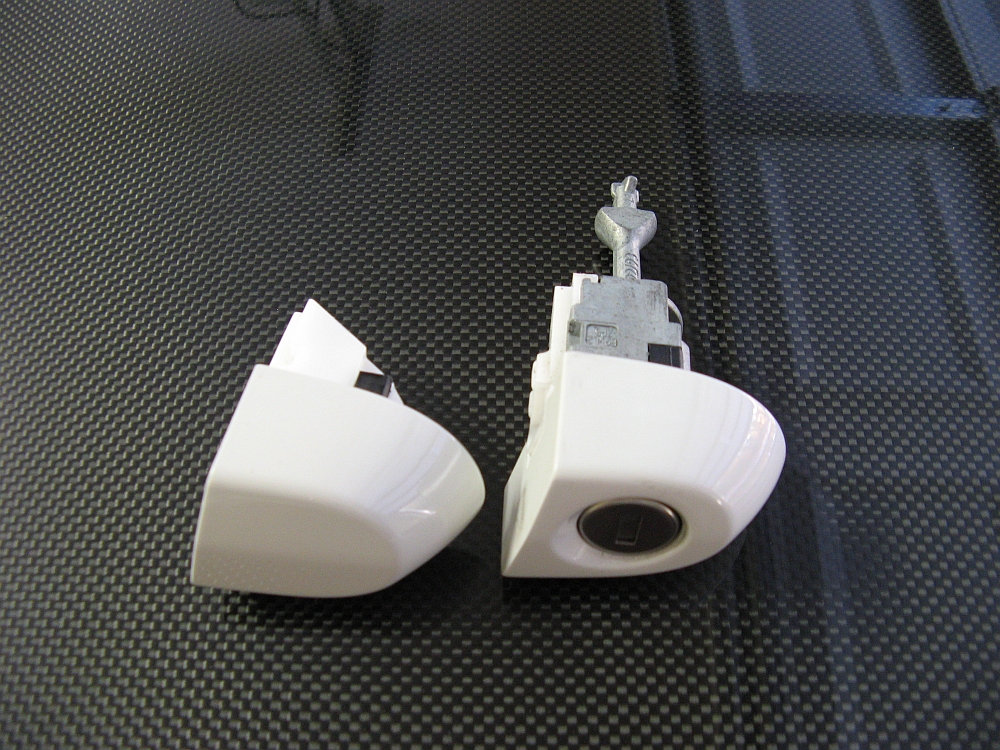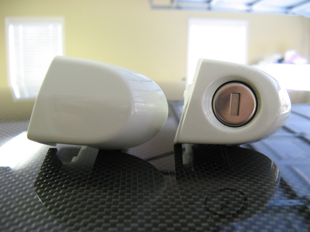 The keyhole cover comes painted to match your paint code. To remove the lock cylinder, the rubber seal at the corner of the door has two rubber nubs that are press fit,