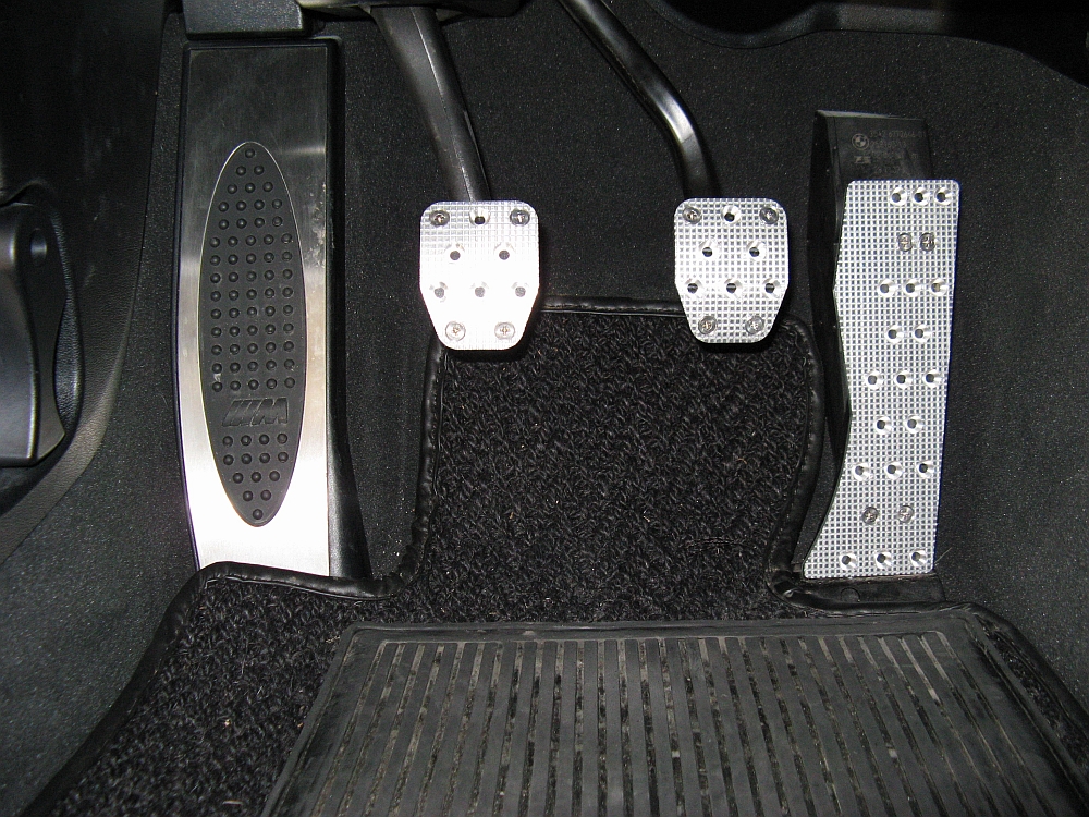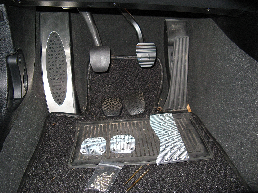 screws for the gas pedal and nylon locking nuts/bolts/washers for the clutch and brake pedals. I opted for the upper left gas pedal heel/toe extension.