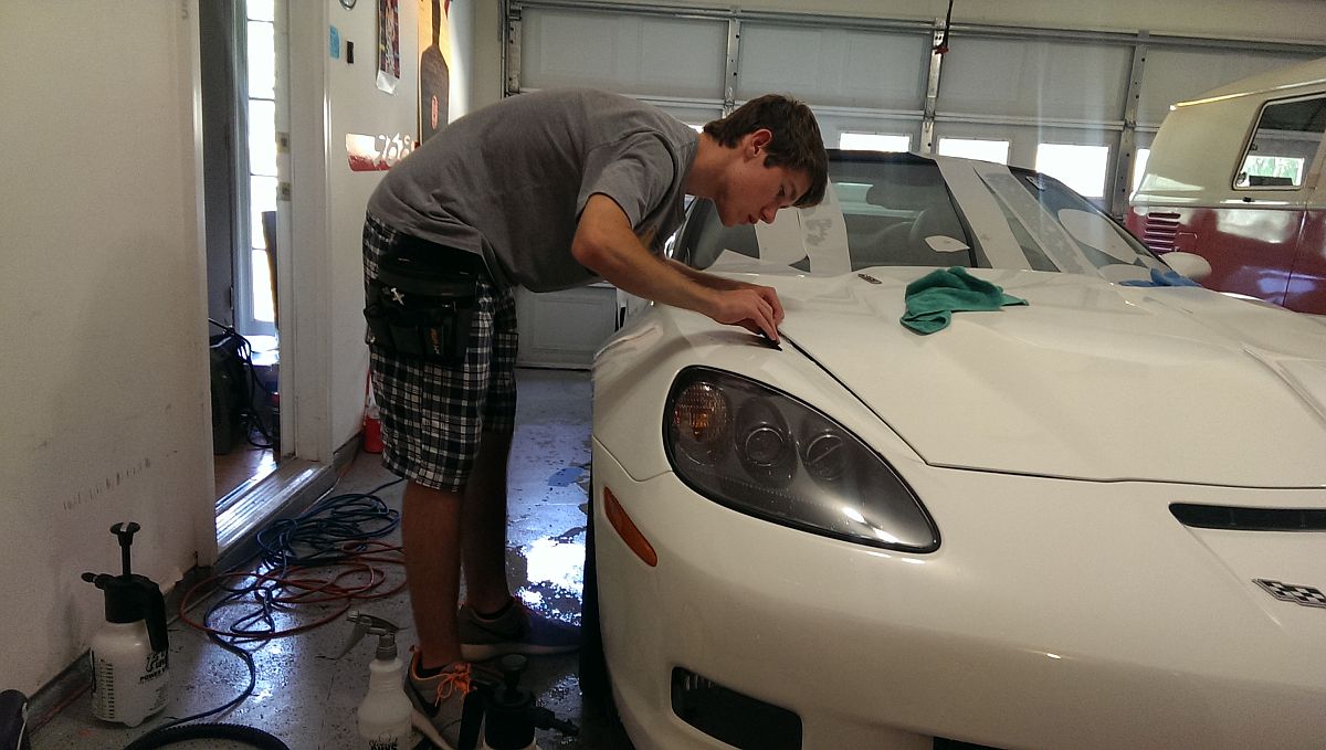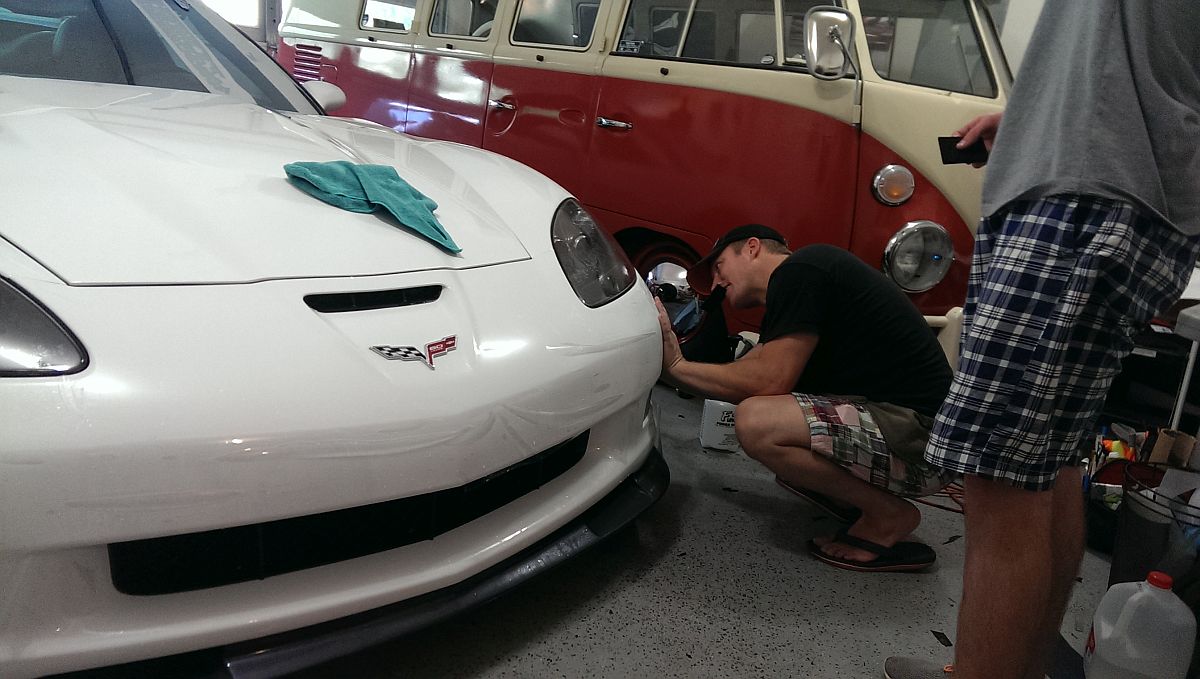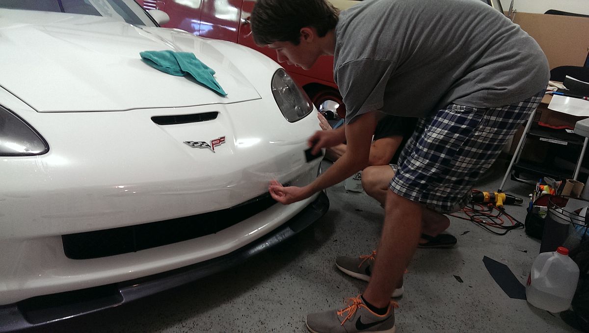The mat retention hooks in my 427 were no where close to where they should have been on either side causing the OE mats to bunch up on one side and even worse with the Lloyds mats. I ended up finding this thread on CF and moved mine in a similar fashion, now they are perfect.Clear bra installed by Keith Chulick at Chuforia Graffix, he uses Suntek film and it is invisible compared to the 3M film I had on the other car. My son had done a few jobs with Keith and assisted with the installation. Prep took almost as long as the clear bra installation, the car was washed and dirt was steamed out of hiding places to prevent issues with the film, a clay bar was used to get rid of some of the black specs of rail dust (or whatever it was) before installation started. Attention to details like this is something I can appreciate, I wouldn't hesitate to recommend Chuforia Graffix to anyone
