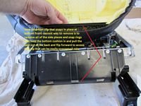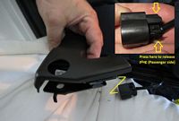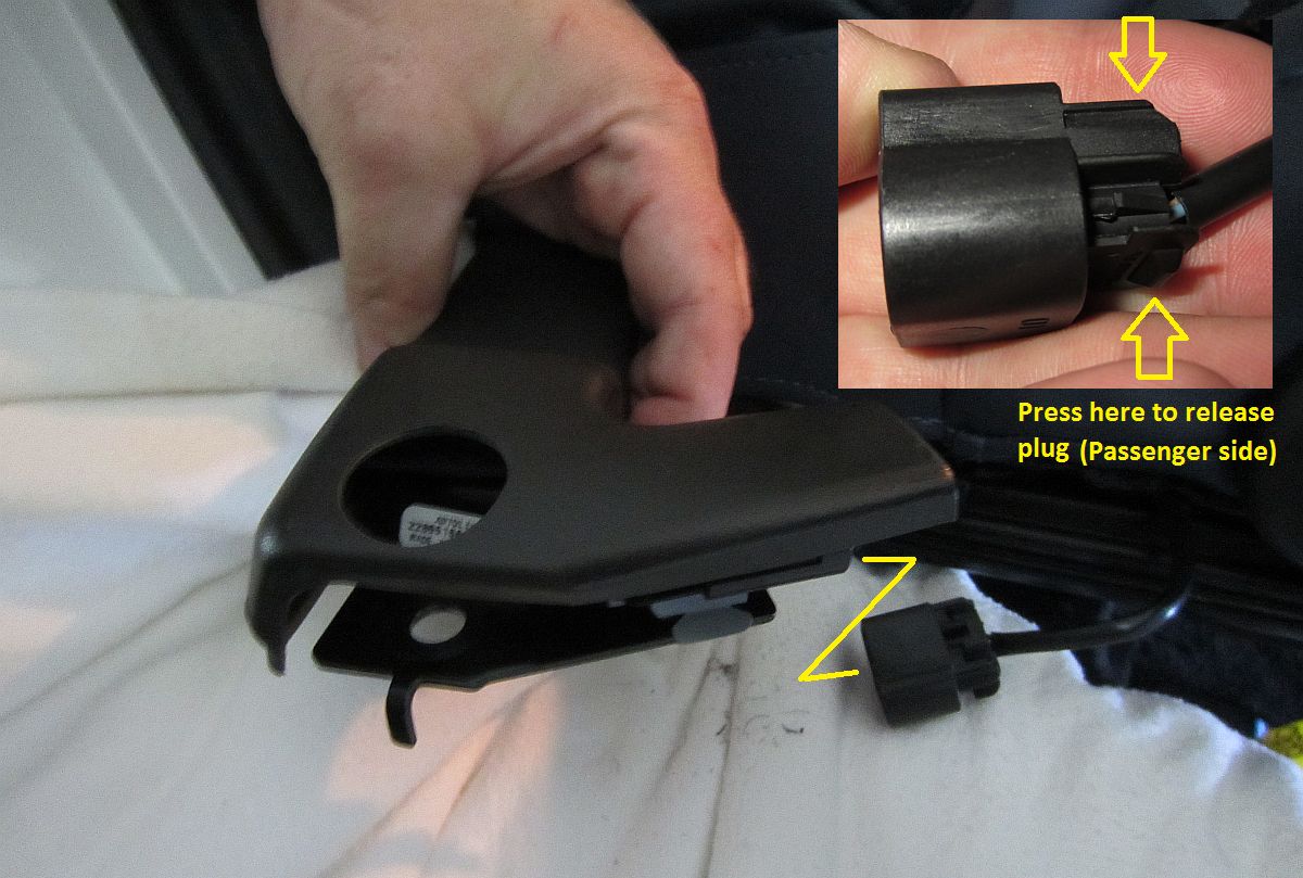 I did notice the 2013 seats are different in one aspect to the 2012, the front of the seat cover actually has a plastic strip that hooks to the front plastic piece and does not rely exclusively on the draw string. Also, the passenger seat is a bit different in that it has the airbag sensor already sitting on a piece of jute, and the seatbelt also has a plug that needs to be undone prior to seat removal- all detailed in below pics.