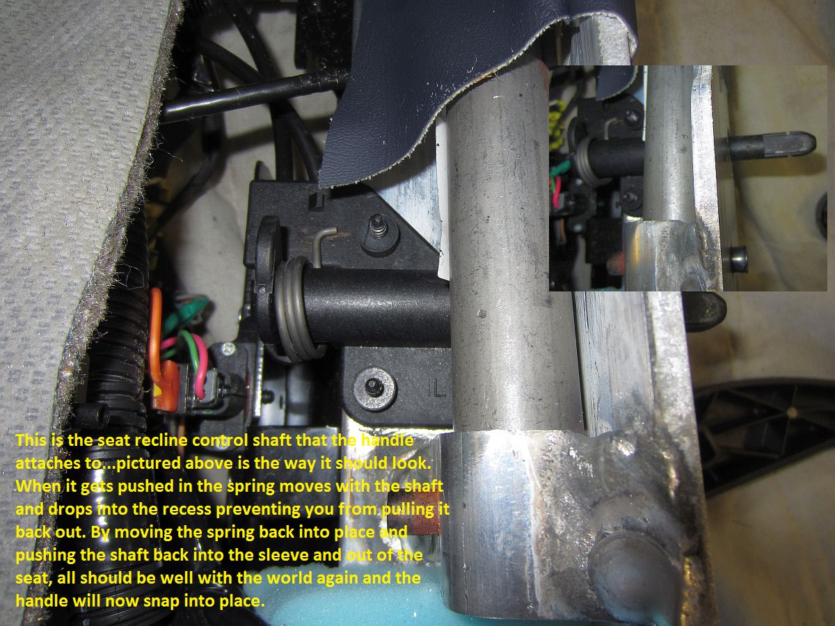 This was also an opportunity to replace the plastic seat adjustment handles with billet handles from RPI Designs, these guys always have a coupon code that makes them cheaper than anyone else for a lot of items. The billet handles look a good bit nicer than the cheap plastic pieces we get from the factory and feel a bit sturdier as well. One thing I did discover is that the shaft they attach to is plastic and if pushed hard enough to snap in place the shaft actually pushes in and it will now be impossible to mount the handle. I used a small file to make the splines in the new handle work a little better until they slid on with no force. To correct the shaft pushed into the seat, I had to take the seat back out, take the bottom off, and while holding the spring out of the way push the shaft back into the recess and out of the seat......also in pics below. These billet handles did require a bit of work, both to polish the imperfections that I could correct and to remove paint for the OE clips to snap in place and to file the splines for a better fit, just not worth the hassle to return for another set-YMMV.