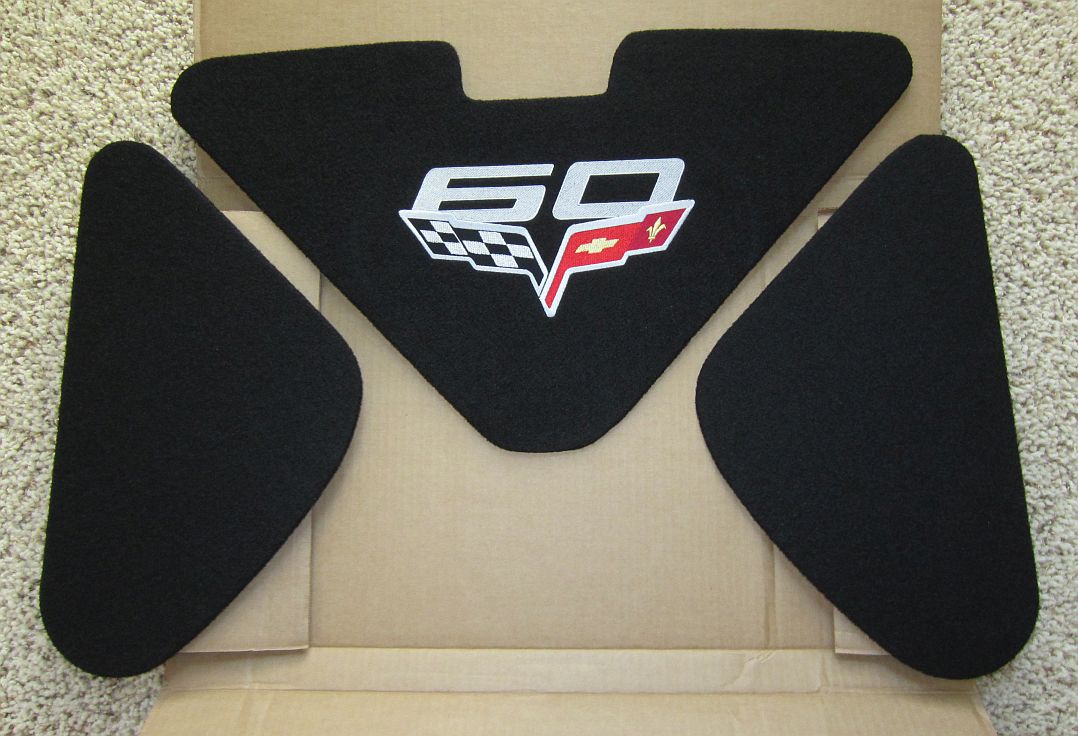 Embroidered "60th" trunk liner purchased on eBay from snakeskinner1- best deal on the net. I always thought the trunk looked like it was missing something, I think this is it. Attached with industrial Velcro, secure and removable.