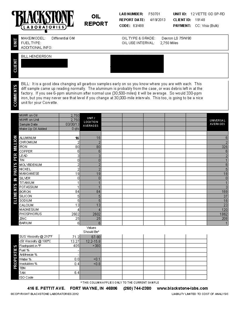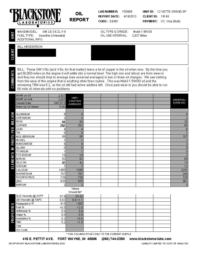 Oil Analysis performed by Blackstone Laboratories