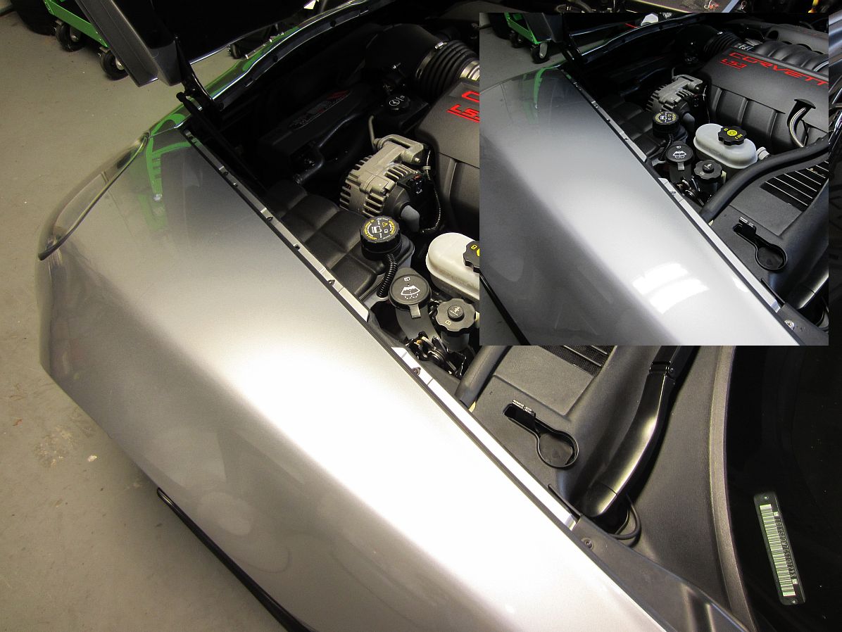 Corvette ID/Specification Data Plate from Corvette Mods installed. I did use sand paper to remove the thin raised line in this area before wiping it down with brake cleaner and applying the plate. I think it adds a little to the engine compartment, YMMV.