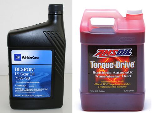 Dexron LS Gear Oil (P/N 88862624) from Cheapest GM Parts (along with differential line clip, P/N 24205103)purchased for differential oil change (and is full synthetic according to manufacturer HERE) and Amsoil Torque-Drive Synthetic Transmission Fluid (P/N ATD1G) purchased for transmission fluid change. I like to change initial fill fluid early to get rid of any break in metals