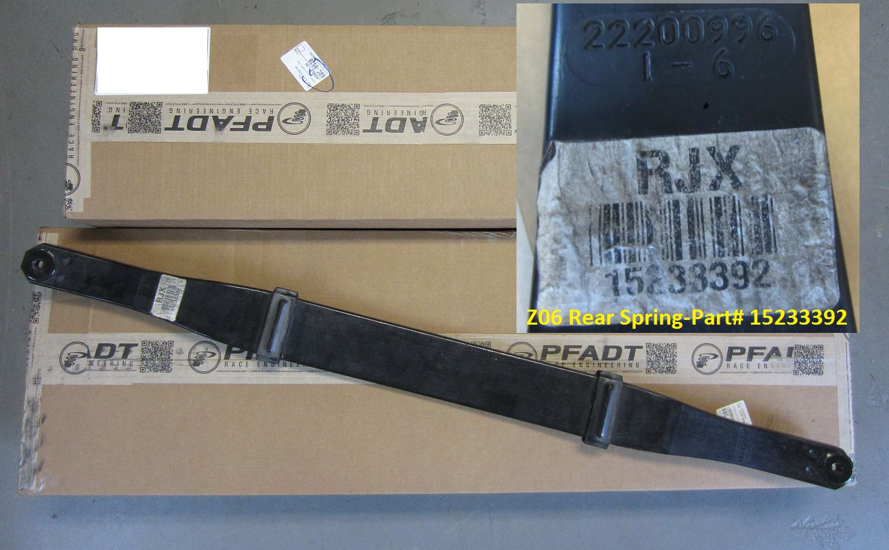 I bought a low mileage Z06 rear spring (from the CF forum classifieds HERE) to dial the the car back towards neutral balance if needed, the Pfadt system was designed on a Z06 but will work with the "lesser" cars as well. The front spring of the GS and Z06 are within a few lbs of each other but the rear spring is a bit stiffer on the Z06.