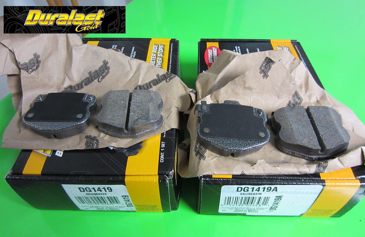 Autozone Duralast Gold Brake Pads (P/N DG1419 front, DG1419A rear) purchased to cut down some of the brake dust produced by the OE pads. These pads are lifetime warranty/replacement so it should be the last set of street pads I will need.