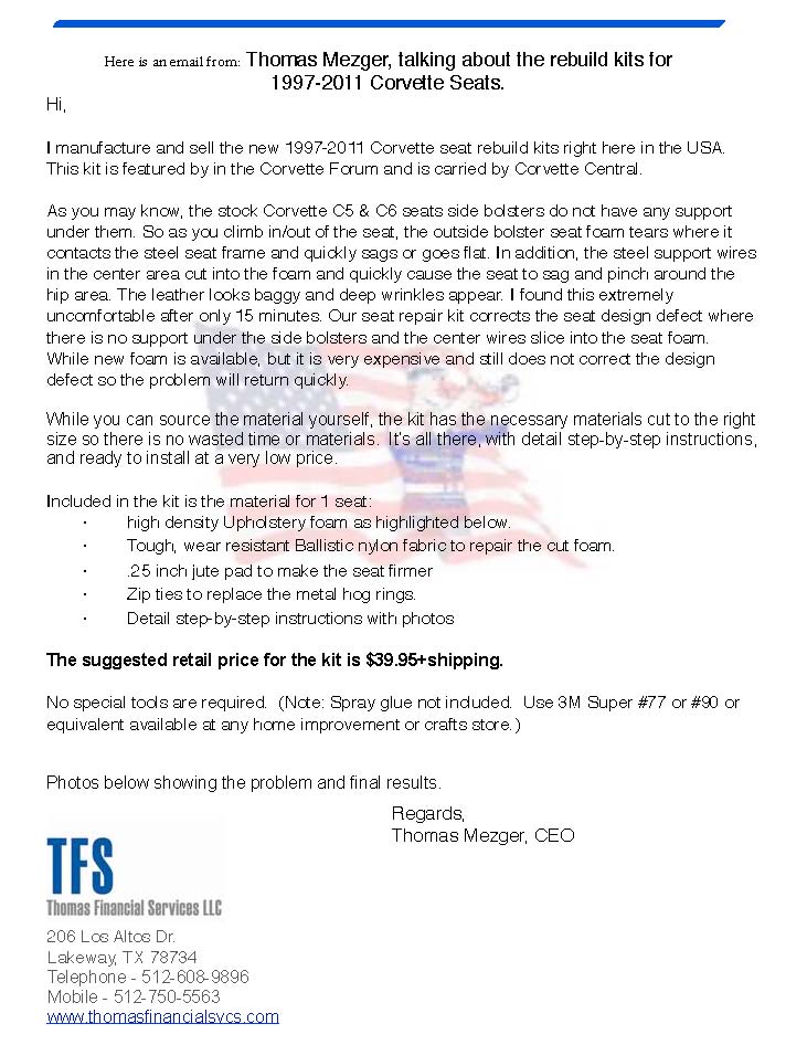 Thomas Mezger's Seat Repair Kit purchased from JWM Motoring- Thomas's write-up on this kit is HERE.