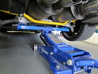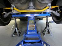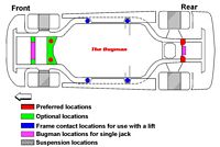 A lot of the guys on the forum lift their car using the preferred jack points as shown on The Bugman's Site using either modified cross beam adapters (one of many CF threads HERE - archived HERE) or pieces of 2x4/2x6.