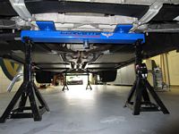 Almost look too good to use for jacking the car up. Super sturdy and do an excellent job while I save funds for my lift. I will be making some 2x6 ramps to drive up on so that the jack/adapters fit under the car without having to jack a bit on either side to get clearance. I'll let the pictures do the talking.