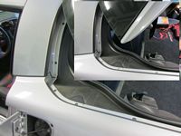 Fiberglass pieces match factory pieces, installation instructions HERE. Some CF Apsis splash guard discussion HERE.