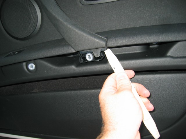 (drivers door does not have this, so skip to step 7). Use the pry tool again