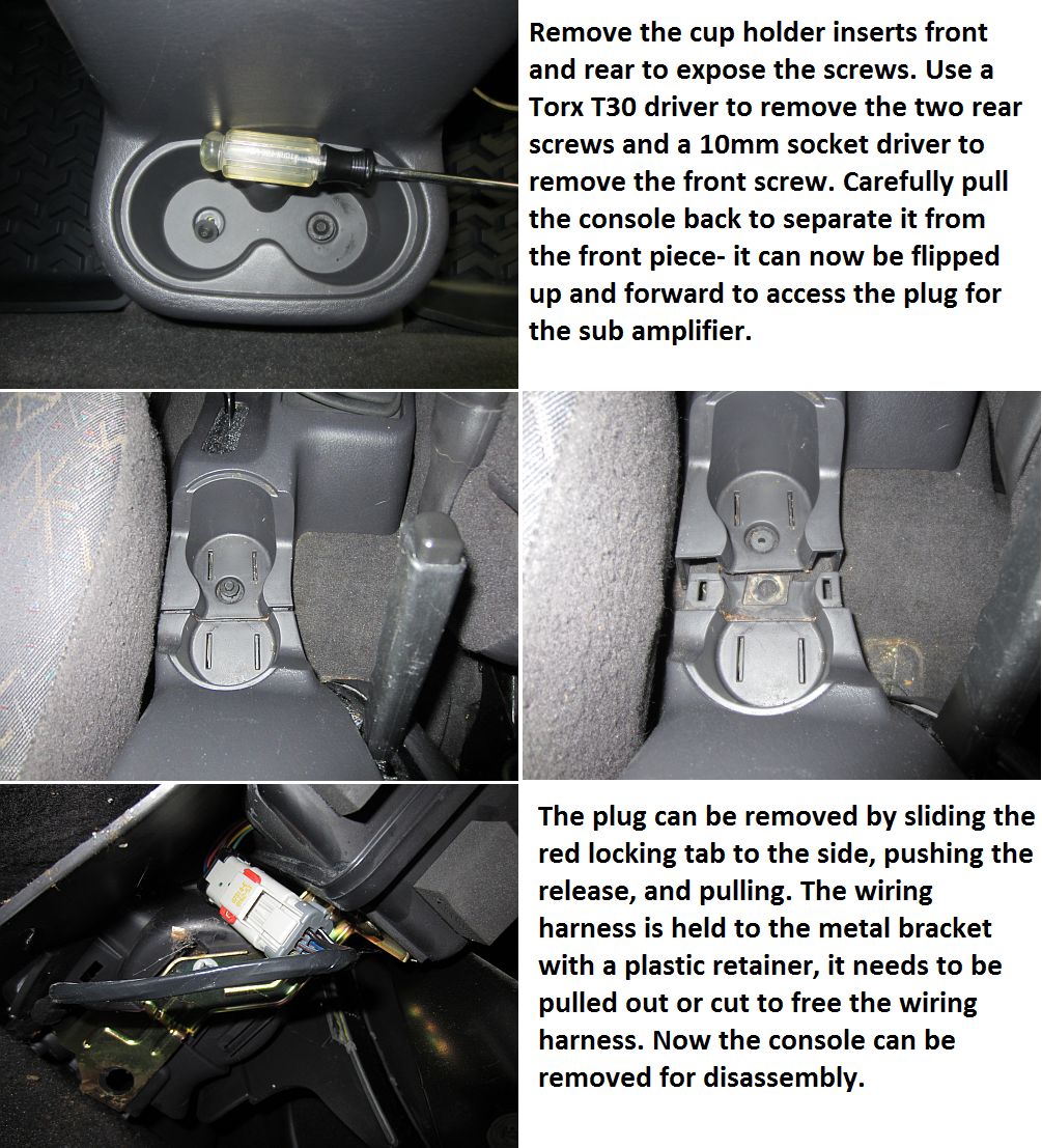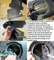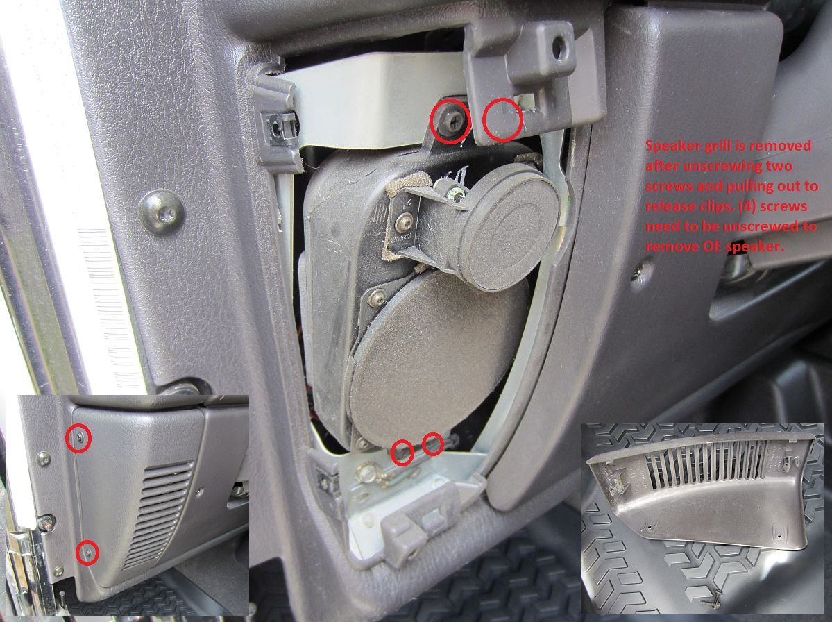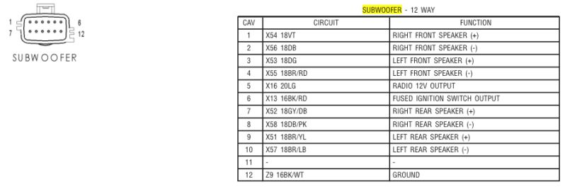 CFE also makes a replacement speaker (available from Quadratec, their DIY replacement guide is HERE, SSV Works makes a replacement center console for a 10" sub and their installation guide is HERE. For those wanting to build their own sub enclosure (measurements HERE) and/or run an external amplifier, the TJ Sub Wiring Diagram is HERE.