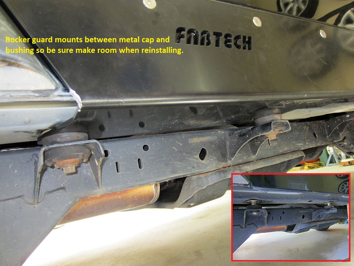 To cover some small dents in the rocker Fabtech Rocker Guards were installed- Installation Instructions HERE. These were chosen due to their coverage (wrap around body) and beefy 1/4" steel. If you ever buy from 4WheelParts (I rarely do but sometimes they have the best price), don't opt for the $10 rush 3-5 delivery- it won't make it if it wouldn't have made it and you'll have to jump through hoops to get a refund....I'm not sure why this wouldn't happen automatically, they have the tracking info and know if they have met the delivery commitment or not.