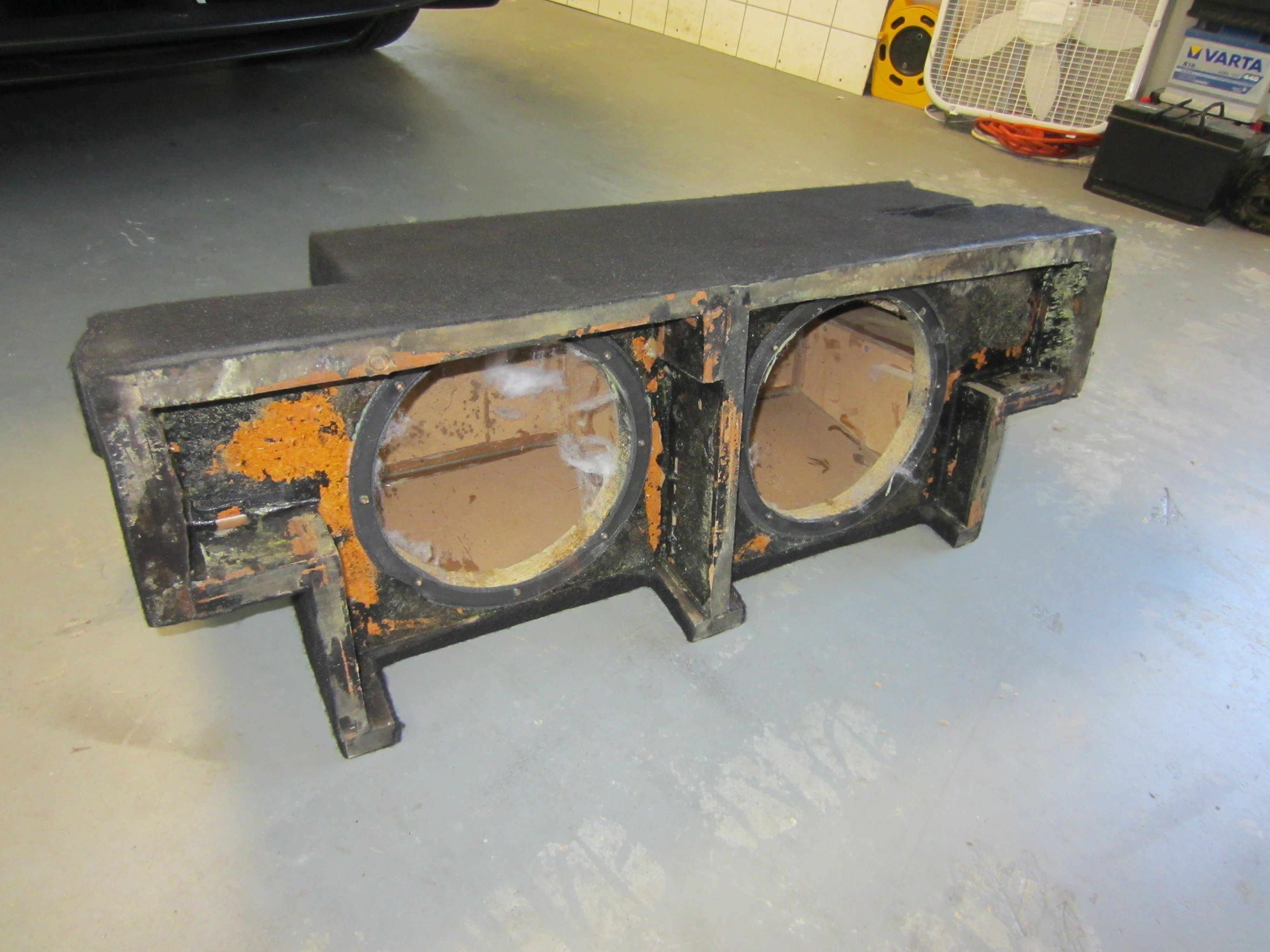 [UPDATE] So, with the sub box above damaged with water, we decided to try the console sub this time around and free up the cargo space.....so a new box and subwoofer were needed. The box was built based on this thread- THANKS OP!