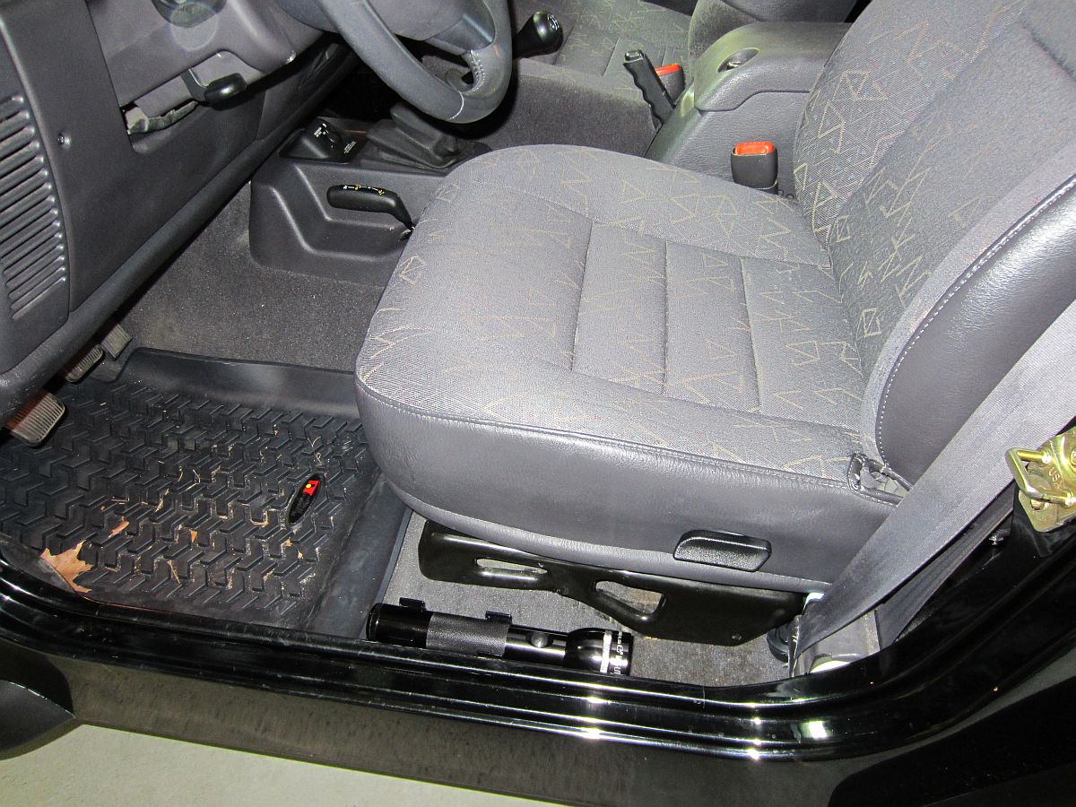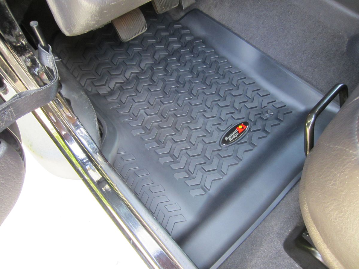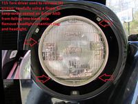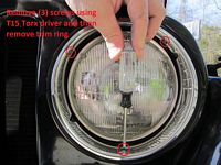 To replace the TJ headlights you will need a T15 Torx driver: 3 screws to remove the trim ring and 4 screws to remove the headlight retention ring. I held a finger under each screw as it was removed/installed so that it would not drop into the black hole. Pics below:Rugged Ridge Black Front and Rear Floor Liner Kit (P/N 12987.10) from Amazon installed. They fit great and should protect the carpet well.