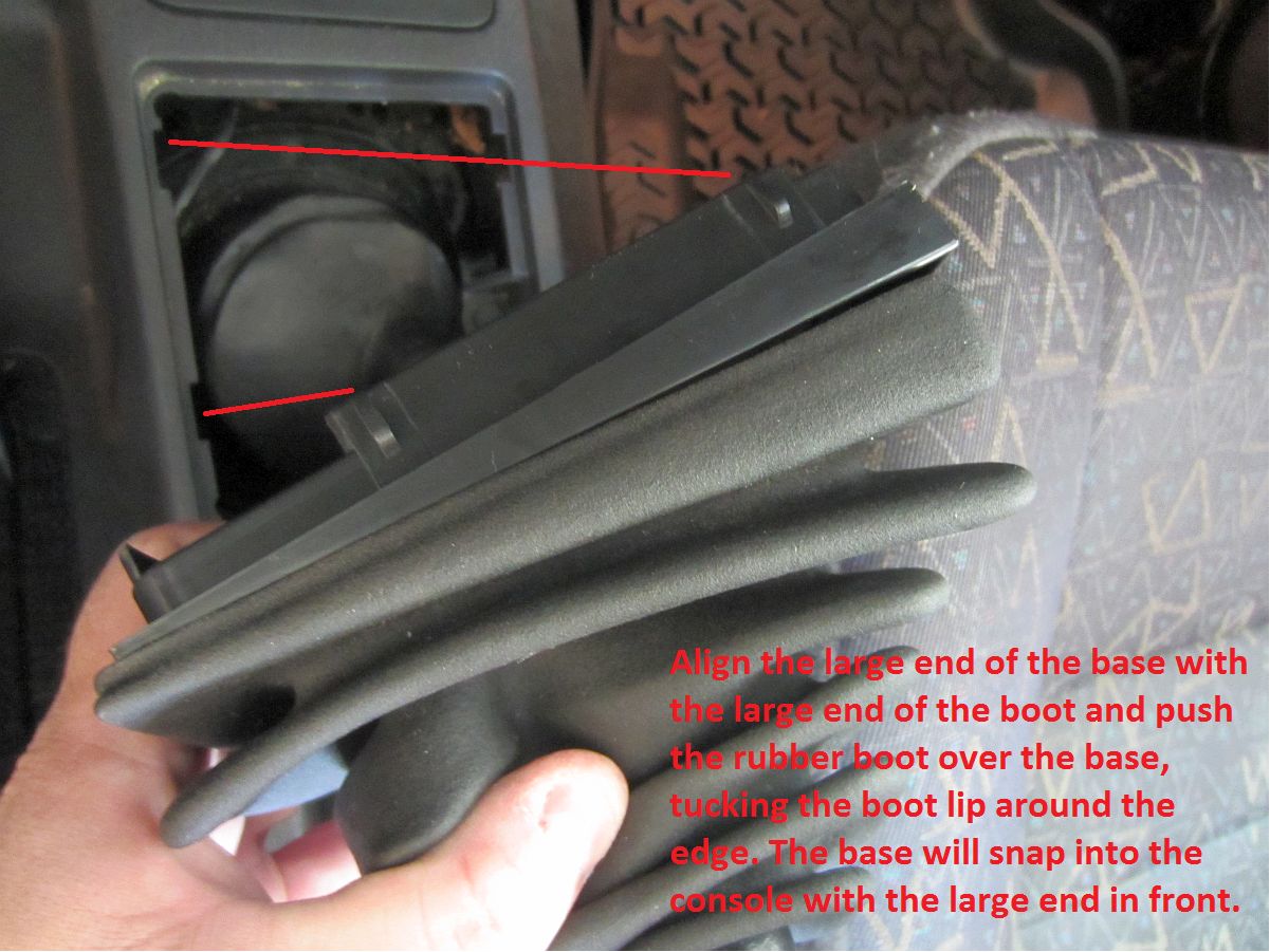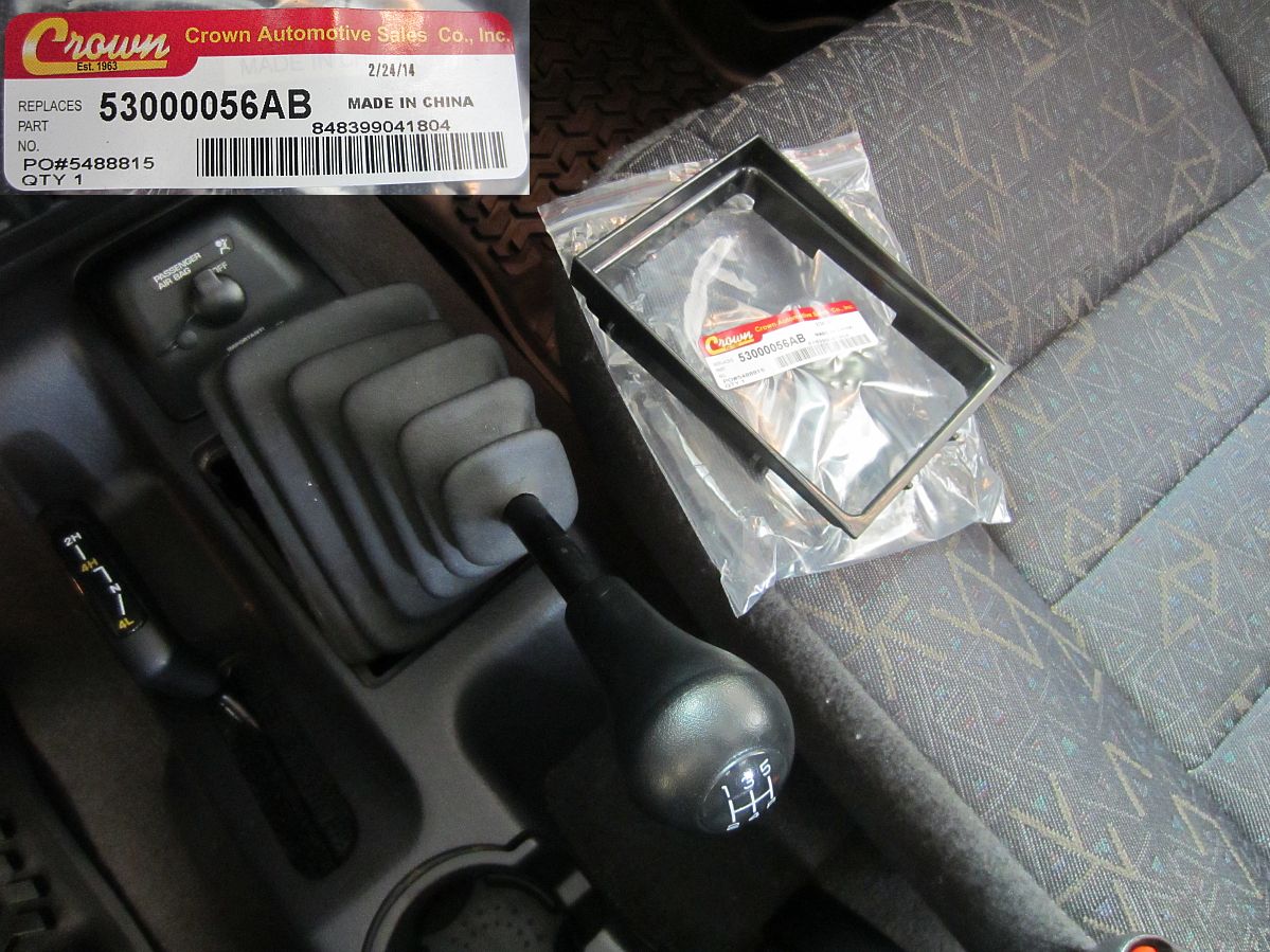 I found the write-up HERE (archived HERE) helpful when looking into this.The shift boot was floating around when we bought the Jeep so a new shifter boot base/bezel was ordered from Amazon, Crown Automotive Gear Shift Lever Boot Bezel (P/N 53000056AB).
