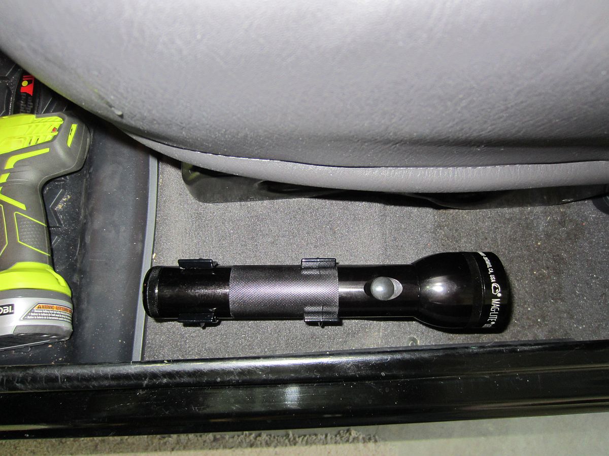 MagLite D-Cell Mounting Brackets (Model# ASXD026, P/N 108-000-426) installed to hold a 2 D-cell LED MagLite.