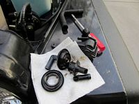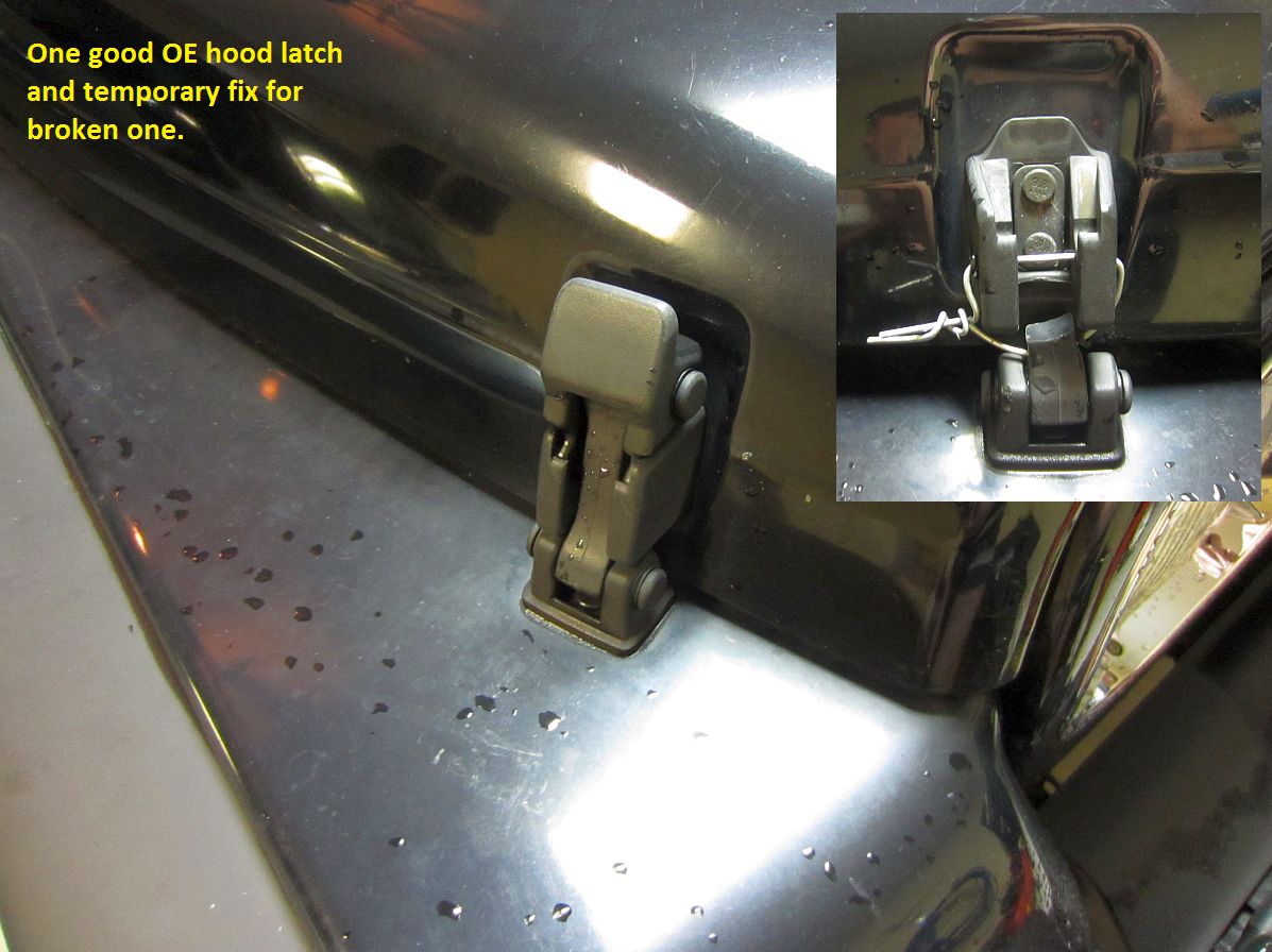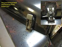 Bosch (OE Manufacturer) fuel pump (P/N 67655) was sourced from Amazon for a good bit cheaper than the offical dealer part. Followed this DIY Guide by WF's Isu60driver almost to the letter, but did use a standard screwdriver and rubber mallet to loosen and then tighten the retaining ring for the fuel pump. Note that this fuel pump has an arrow on the edge that should be pointing towards the front of the Jeep when installed so that it is oriented as in the pics in the DIY guide. Also, soak the nuts down with PB Blaster a few days before- we had to air chisel one bolt/nut off that twisted in the sheet metal in one of the hard-to-get-to front locations. Jacking up the rear of the Jeep and placing jack stands under the axle make access a little easier. We turned it into a party and had a BBQ for friends that helped out, makes the job MUCH easier.Son had an uh-oh so good time to upgrade damaged parts. Rugged Ridge Aluminum Hood Latches (P/N 11210.15) from Amazon installed- Installation Instructions: HERE.