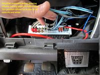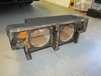 A friend gave my son some old Polk Momo 10" DVC (MM2104DVC) speakers (manual HERE) so we ended up building a sealed box/enclosure for them over the weekend with both speakers firing down. Speaker voice coils, 4-ohm each, were wired in parallel so that the each channel of the amplifier would see a 2-ohm load for each speaker. Amplifier installed was an old Blaupunkt PA4100, a 4 channel digital model using Tripath Technology for VERY low heat and one that could be mounted upside down- an important feature for under-steering-wheel-column mounting. By wiring the front and rear/soundbar speakers in parallel I was able to get all 4 channels down to 2-ohms for 125 watts RMS each (Channels 1/2 for mids/highs high pass xover set to 90 Hz, Channels 3/4 for subs with low pass xover set to 120 Hz). The center console subwoofer was disconnected since the installed amplifier was too much for the factory line converter to handle and it was really no longer needed.