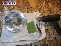 Before installing the lights I applied Lamin-X protective film, thick 40 mil, to protect the headlight lenses since they are glass. Using the instructions HERE, this is a very easy install. For these round headlights I just buy the cheaper bulk film and use a razor to trim away the excess using the glass lens as a guide.