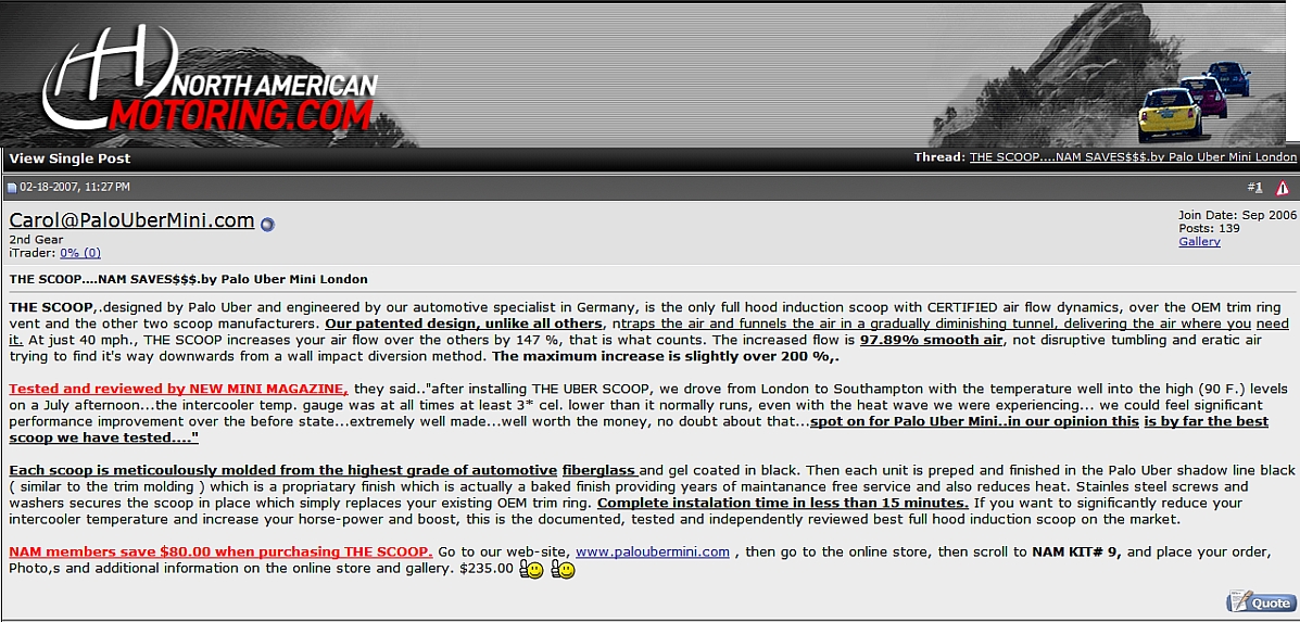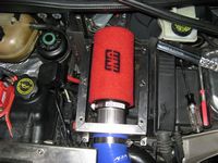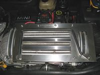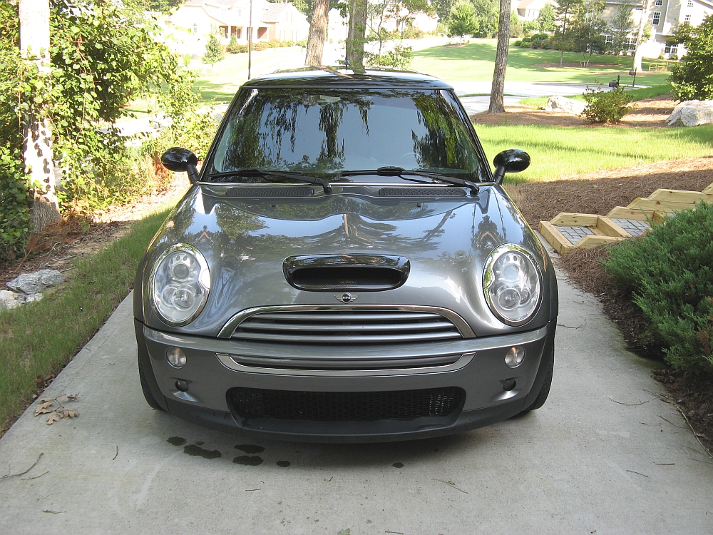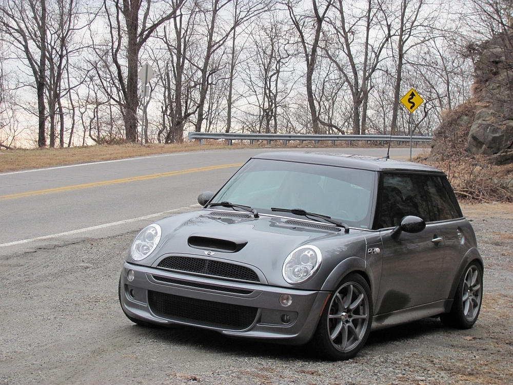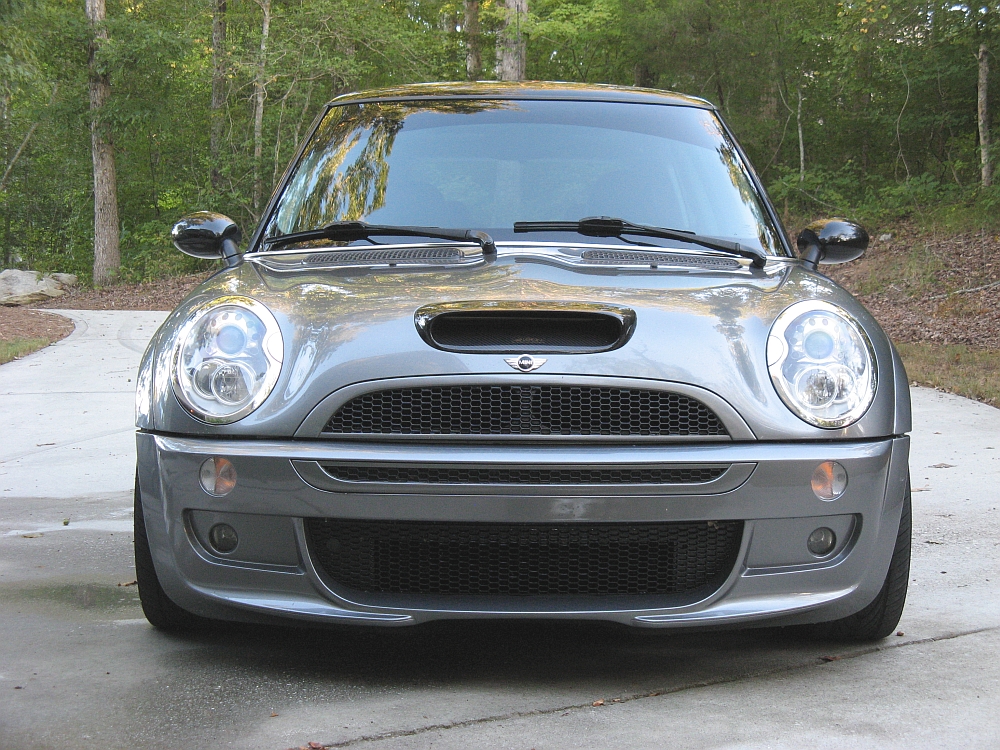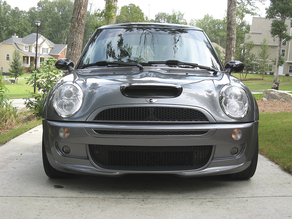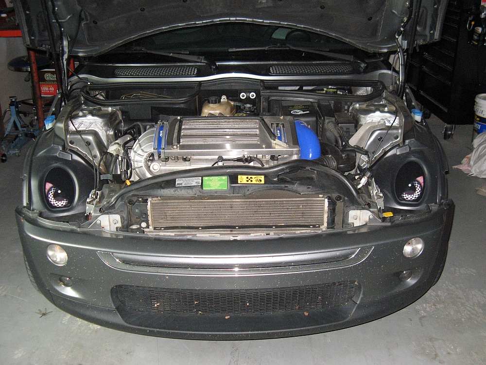 DDM Works R53 Cold Air Intake from EuroSport Design installed. This intake encloses the reusable UNI filter and is integrated with a new rear piece that replaces the OE piece- no cutting so return to stock is easy. The intake seems to offer a bit better acceleration and a lot more supercharger noise