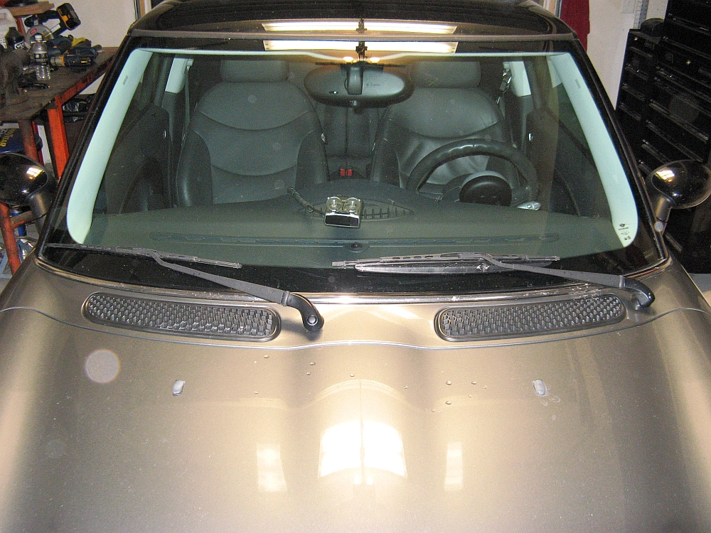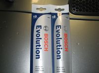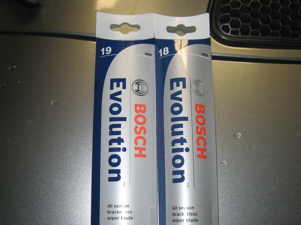 I typically use Rain-X and ONLY use the wipers when it is not raining hard enough for the Rain-X to be effective. The wipers on the Mini are kind of hideous, so that and the fact that the wipers did not work great was an excuse to replace with some Bosch Evolution wiper assemblies- 4818 (18") for the drivers side and 4819 (19") for the passenger side:
