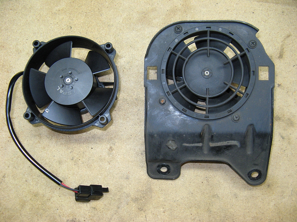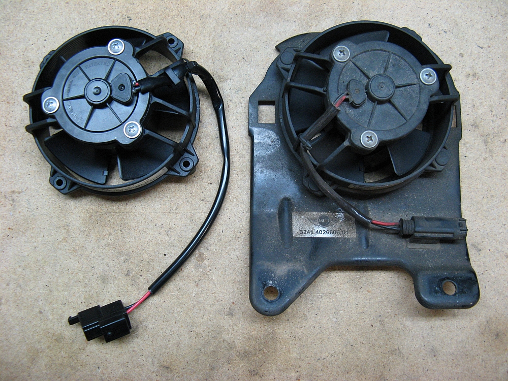 I also ordered a SPAL replacement fan, my fan was still working but I felt if I was installing a new pump, I would go ahead and replace the fan as well. The SPAL P/N VA32-A101-62A was only $60 from A1 Electric, their P/N is 30103018. This fan is a direct replacement for the Mini fan except the power wiring harness has to be spliced into the Mini plug that you will remove from your dead fan. The SPAL fan is made in Italy and reputed to be better than the "other" manufacturer(s) fans that were used, and ordering this way is a LOT cheaper- I don't mind splicing in a harness connector.