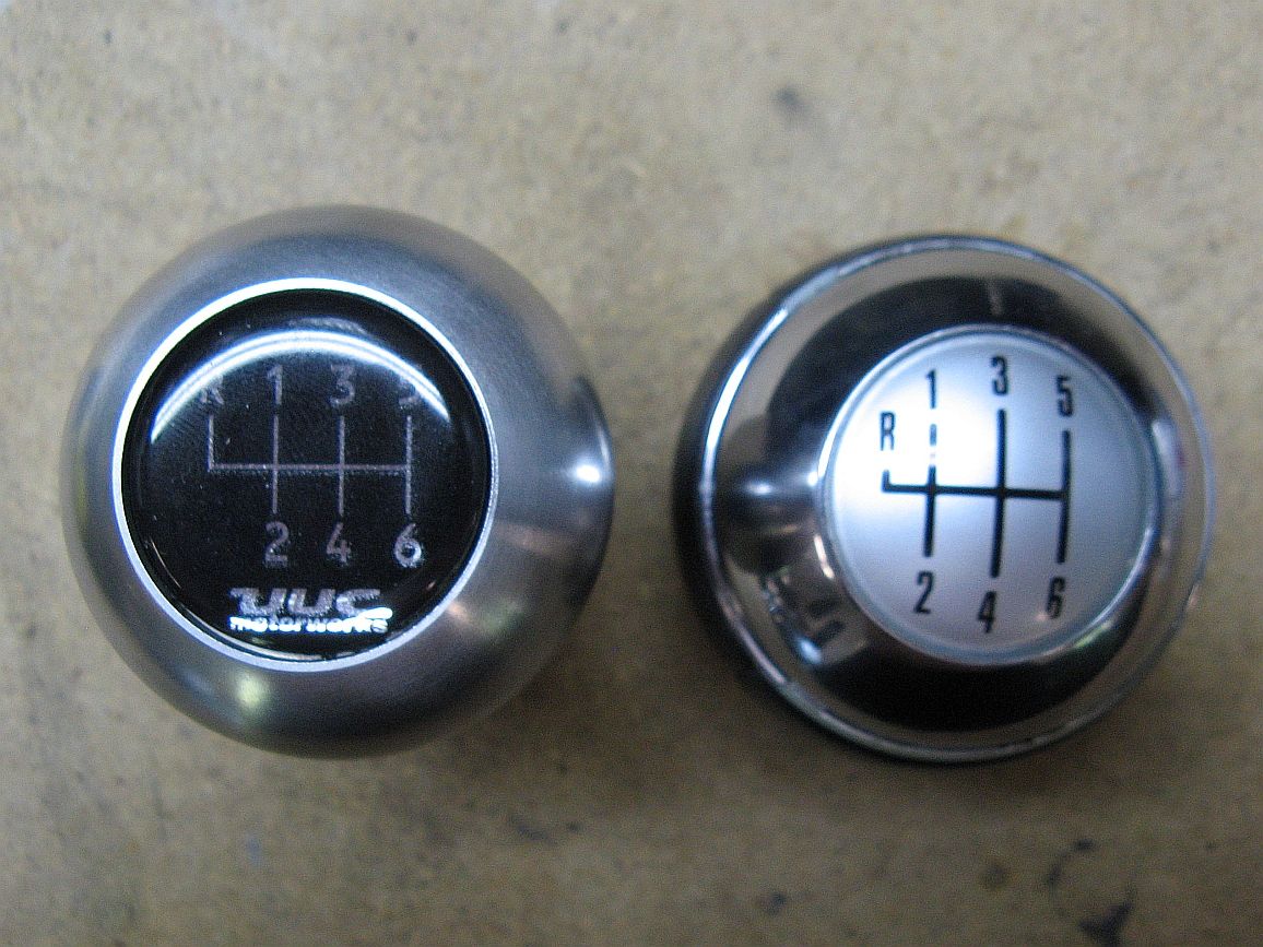 RK3 shift knob from UUC Motorwerks (archived ad/details HERE) and shifter/hand brake boots from Redline Goods installed. I didn't care for the shifter height/throws so I decided to shorten it a bit, about 1.75". The plastic chrome on the OE knob was worn a bit so this was a good excuse to source a new knob from UUC- this also worked with my approach to shortening the shifter since the UUC knob relies on a hex screw (2.5 mm HEX wrench to install) to hold it in place and not the OE retention system. I waited a while for this knob and it seems that it is NLA even though I was able to place an order for it on the UUC website, Arjun was able to dig one up for me though after I contacted him (Thanks Arjun!). Surprisingly, the OE shift knob is weighted but just a little less than the RK3's ~22 ounces.