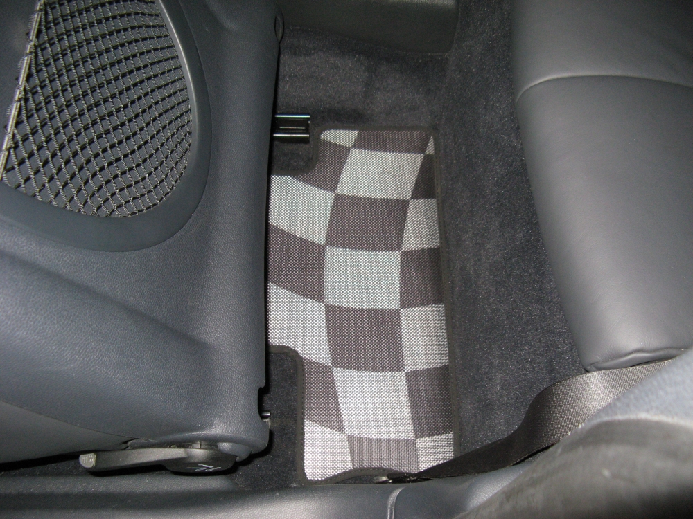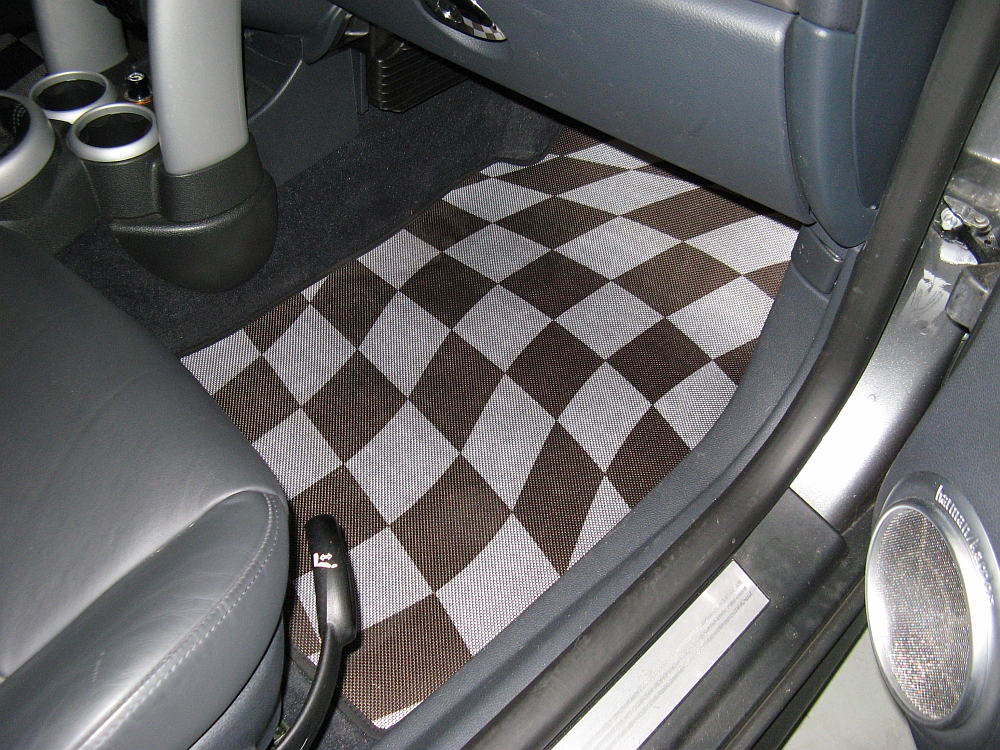 These floor mats are heavier duty rubber with a checkerboard pattern molded in, they should provide the lasting power/protection of the rubber mats but with a little more style: