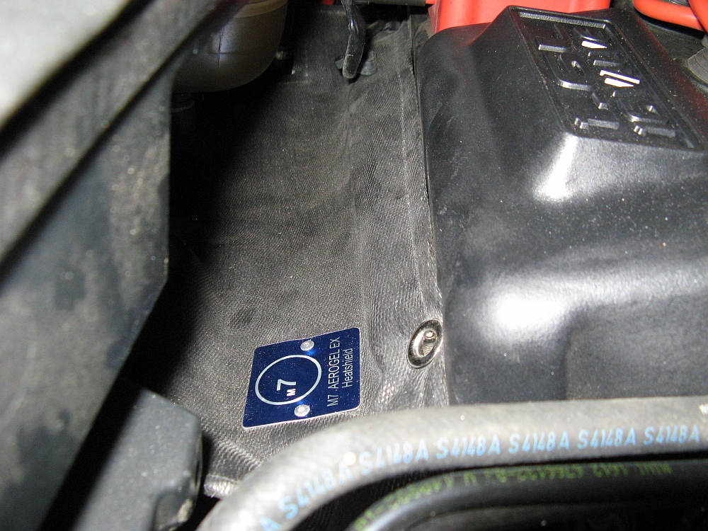 M7 Aerogel EX Heat Shield installed to reduce heatsoak from exhaust manifold (and future header). Easy to install, I just removed one of the bolts/wire harness holders from the valve cover using a ratchet/extension/8mm deep socket and swapped it with a regular bolt on the other end of the valve cover. This allows the grommets on either end of the heat shield to have an anchor point. This heat shield is like a flexible mat and was tucked in over the existing heat shield and around the perimeter. M7 installation instructions are HERE. Product Release information with infrared comparison pics is HERE.