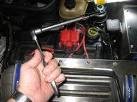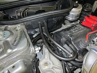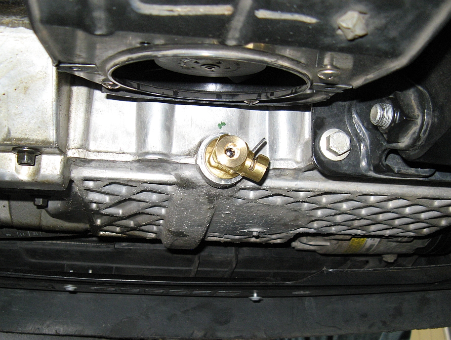 Time to go back underneath the car, the Fumoto valve was installed hand tight and then 1/4 of a turn with a 19mm wrench. Before installing the valve you may want to open and close the valve a few times to make it easier the first time you use it. To bring the oil up to the full mark, I used 5 quarts of Amsoil 5w40. Last but not least, start the car and let it idle for a while, make sure there are no leaks, and replace the PSP fan shroud if your car has one.