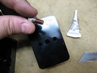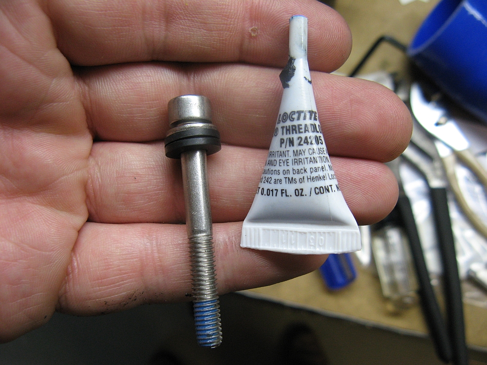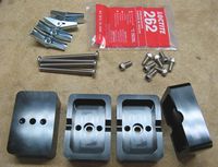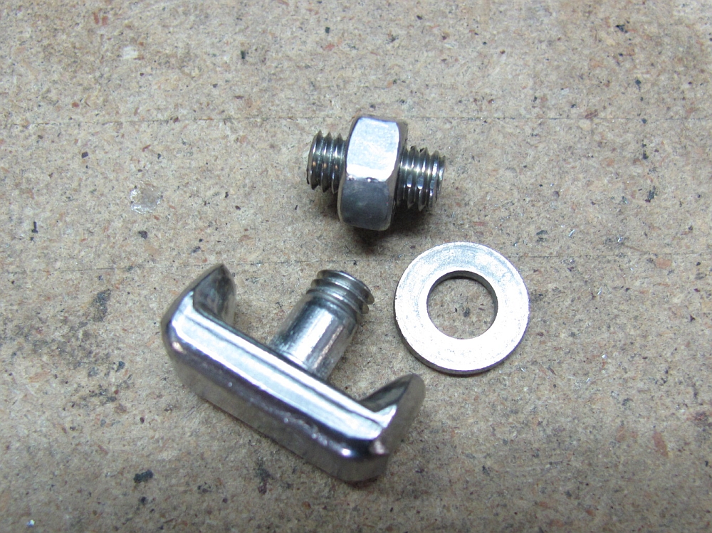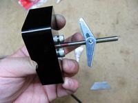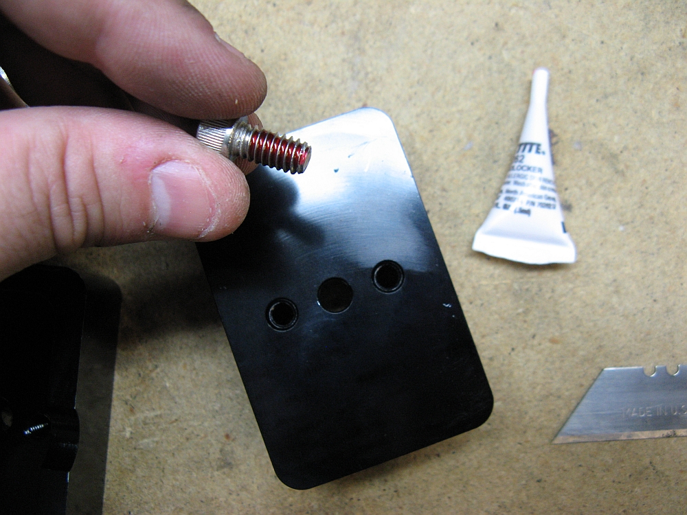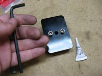 After the OE jack points were removed I went back to the bench to get the TSW jack points ready for installation. The smaller HEX head bolts are inserted in the outer holes and tightened using a 3/16" HEX wrench after applying LokTite. I repeated this step until all four points were completed. These two bolts serve to align the jack point with the slot at the mounting point on the car. The center bolt was then placed through the center hole from the inside and the toggle nuts threaded about halfway down- LokTite applied towards the base of the threads (from 1/2 to 1 inches from the bottom) where the toggle nut will end up when tightened during installation.