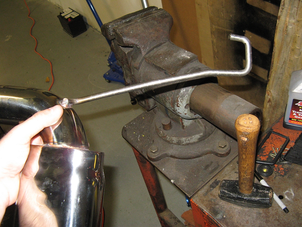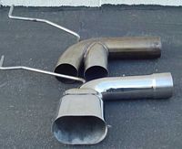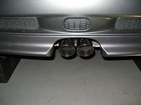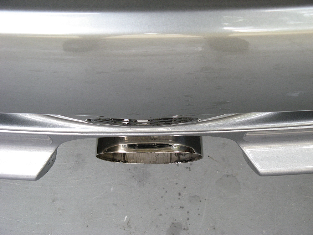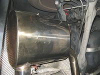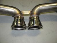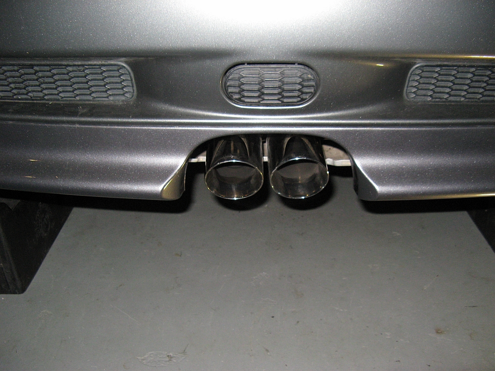 My header installation is detailed HERE, the exhaust was a simple R&R. The IE exhaust did take a bit of adjusting to fit but for the price has got to be one of the best values out there for this car. The construction is great, I prefer the passenger side/single muffler approach, it has to weigh half as much as OE, and the fitment issues were no big deal in the grand scheme. I did order the new "big mouth" single tip to see if I like it better than the Alta dual tips that came with it from the previous owner. Installing the IE "big mouth" tip required some grinding and bending to center and hang the tip....but I think it looks good. Hylomar EAP5 exhaust assembly paste was used on the slip joints to ensure a better seal.