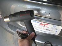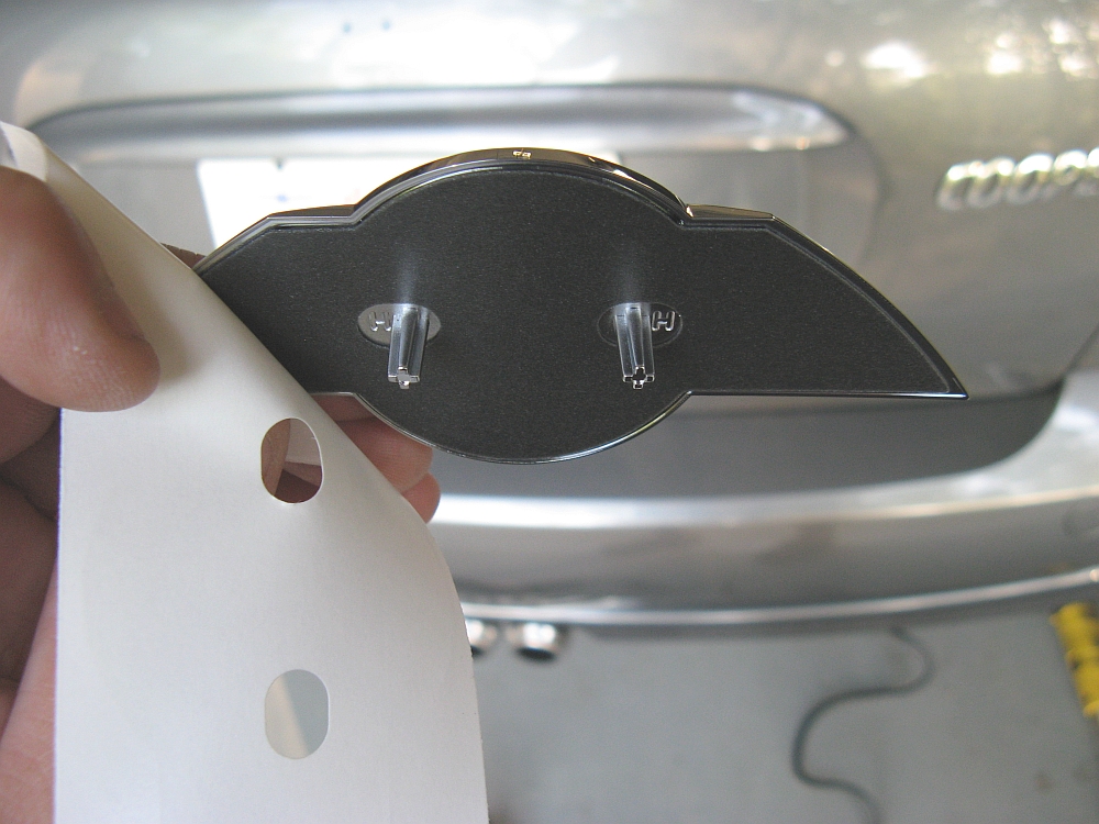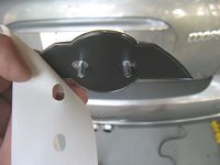 The old one was definitely stuck on good, in addition to the heat gun and blow dryer you may want to use some REAL dental floss to saw away at the tape under the emblem to release it. I used some brake cleaner to make sure all wax/grease/etc was removed so the new emblem would adhere well. The new emblem comes with double-sided tape, just align the pegs on the back with the holes in the hatch and apply light pressure to set the adhesive on the double-sided tape.