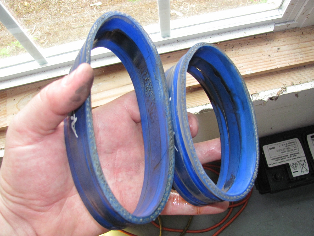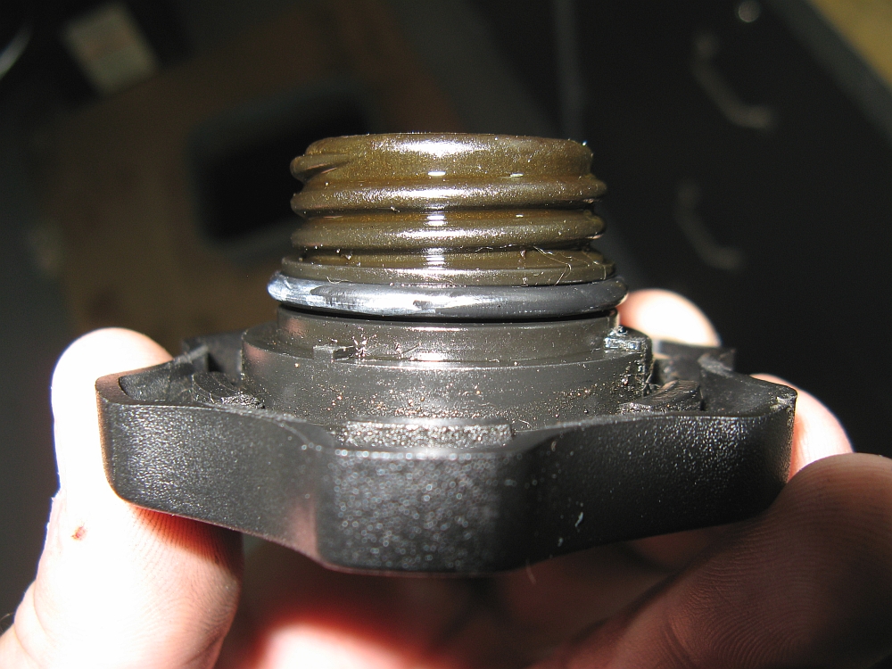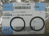 If your car has some miles/years on it and you notice oil residue around the oil filler cap, chances are it is time to replace the oil filler cap o-ring seal. After it cooks from the heat of the motor over time it starts to lose its rubber characteristics to become more like plastic and flattens out a bit, note the before and after picture differences. Easily replaced with P/N 11127514981 :