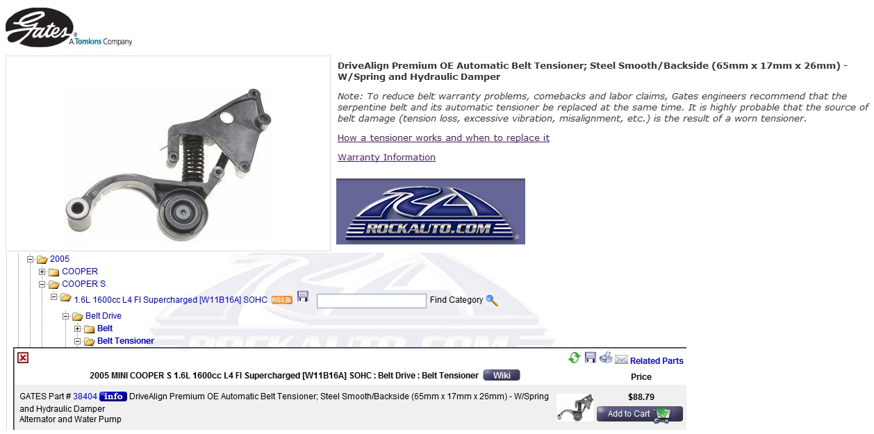 Before finding out the bushing replacement would be a quick turnaround, I looked into ordering a new tensioner assembly since the damper is not available separately. The best price I found was a Gates labeled tensioner assembly (P/N 38404) at Rock Auto for ~$100 shippedThis was about 25%-50% less than the other online prices I found. After it was delivered I opened the box to find the same OEM Litens tensioner that is on the car now, what a deal. I'll store it as a backup until I need it.