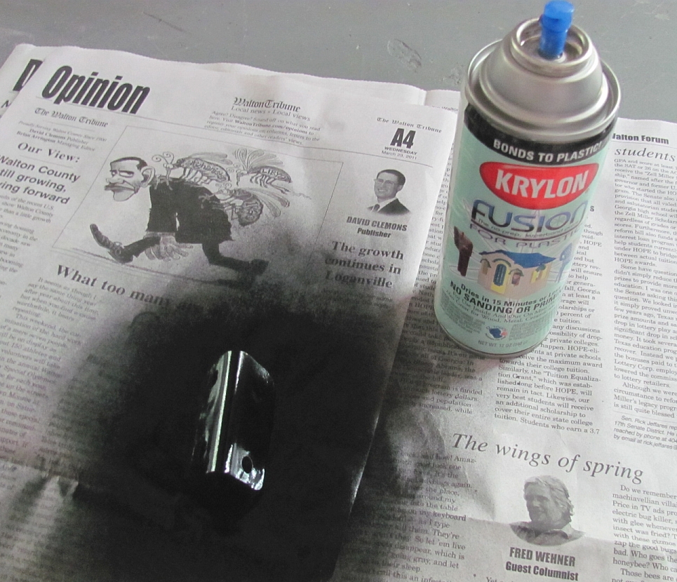 The eBay phone holder was the belt clip type, I used a Dremel tool to remove the belt clip and make the rear of the holder flush. I also had to notch it for the power plug, the holder is meant to be used with the phone facing in and NOT connected to power. Since I may not always have this phone, I wanted to be able to potentially remove this mount and install another later. To do this I attached the phone mount to the Kuda mount using E6000 adhesive- it will not go anywhere while I want to use it but with some force I will be able to remove the mount and peel the adhesive off the Kuda mount to reuse. The mount was taped in place over night and and the adhesive allowed to cure. Any excess adhesive is easy to cleanup when when dry, it just peels up.