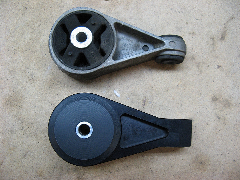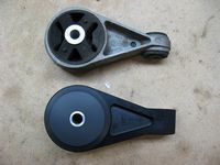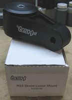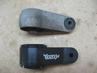 With the upper mount having been bad for an undetermined amount of time, I figured the lower mount had been taking the brunt of the motor movement and was likely bad as well. In anticipation of this, I went ahead and picked up the street version (durometer of 70A vs 88A for "Race") of the BSH lower mount (P/N 10330101) from Helix at MOTD. This mount eliminates bushing material at the trans mount end and has a significantly stiffer Delrin bushing at the firewall mount end. A little more NVH but nothing I would complain about (but several on NAM have) and a LOT more connection- shifts are SOLID now with not-a-lot of motor movement. If it is like other VF poly mounts I have used on other cars it should bed in after 1k miles or so and NVH will decrease, I will update this review then.