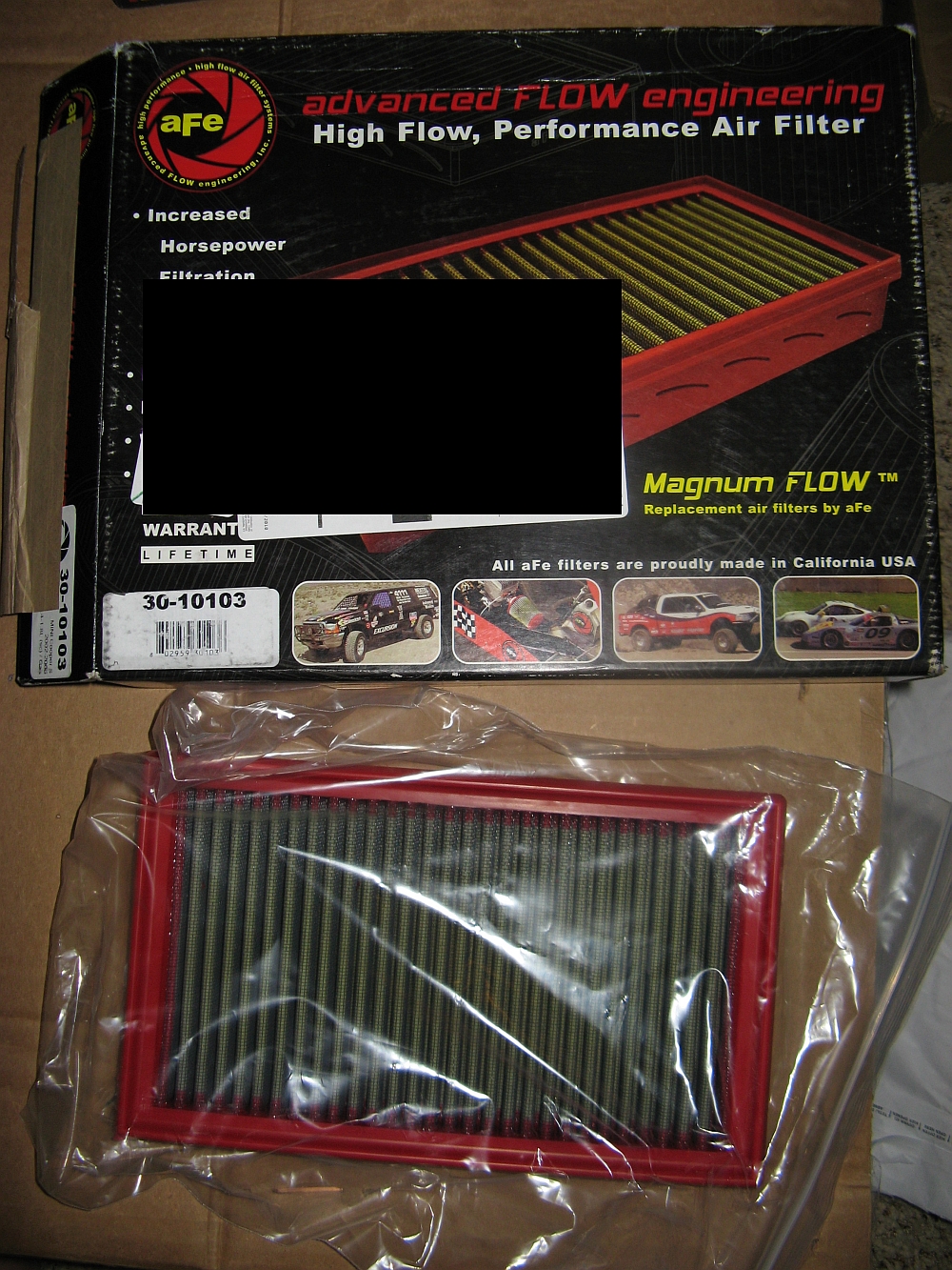 It also seemed like a good time to install a drop-in aFe air filter (P/N 30-10103) for the OE airbox.