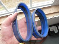 I discovered that with ~30k miles and about 8 months of use, the PowerFlex tensioner damper bushings were shot. I found on the NAM forums HERE and HERE that there was a manufacturing issue/defect for some of these and it was highly likely that I had gotten some of the bad batch. In my correspondence with PowerFlex USA I found that all of their bushings have a LIFETIME WARRANTY and that I should return these to Way to get a new set- which Way was quick to do, I picked them up the next day (THANKS WAY!). The material of the new bushings feels a good bit stiffer than the failed ones so hopefully these "correct" batch bushings will last.